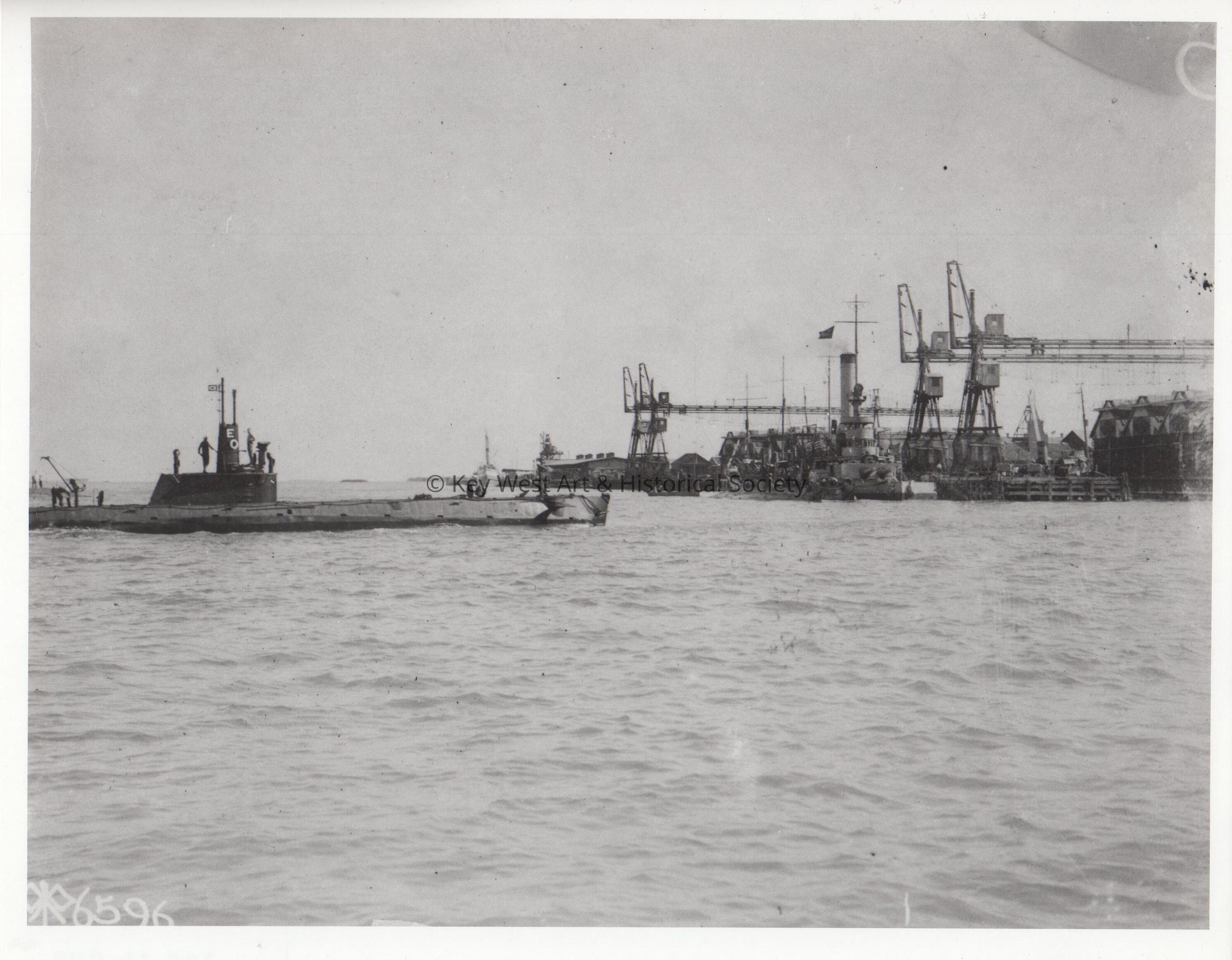 Black and white photograph of a submarine off Naval Station Key West during World War I.