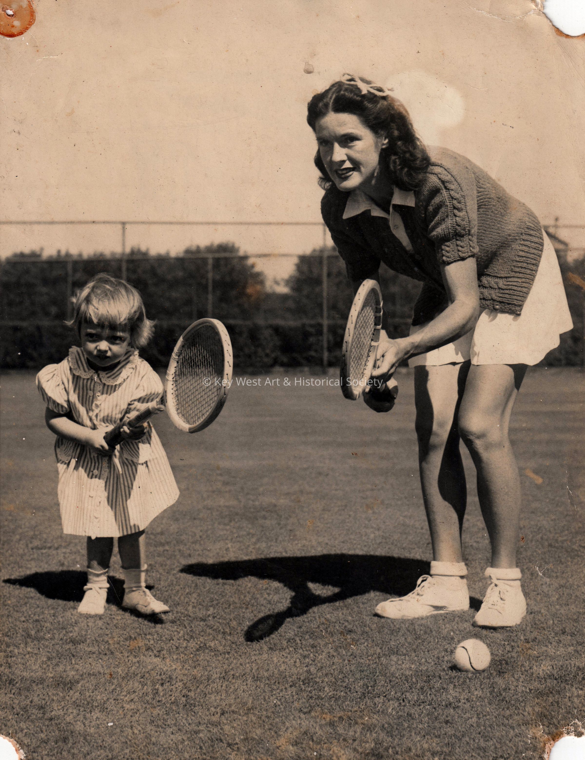 Woman and child playing tennis at Casa Marina Resort, Key West.Collection