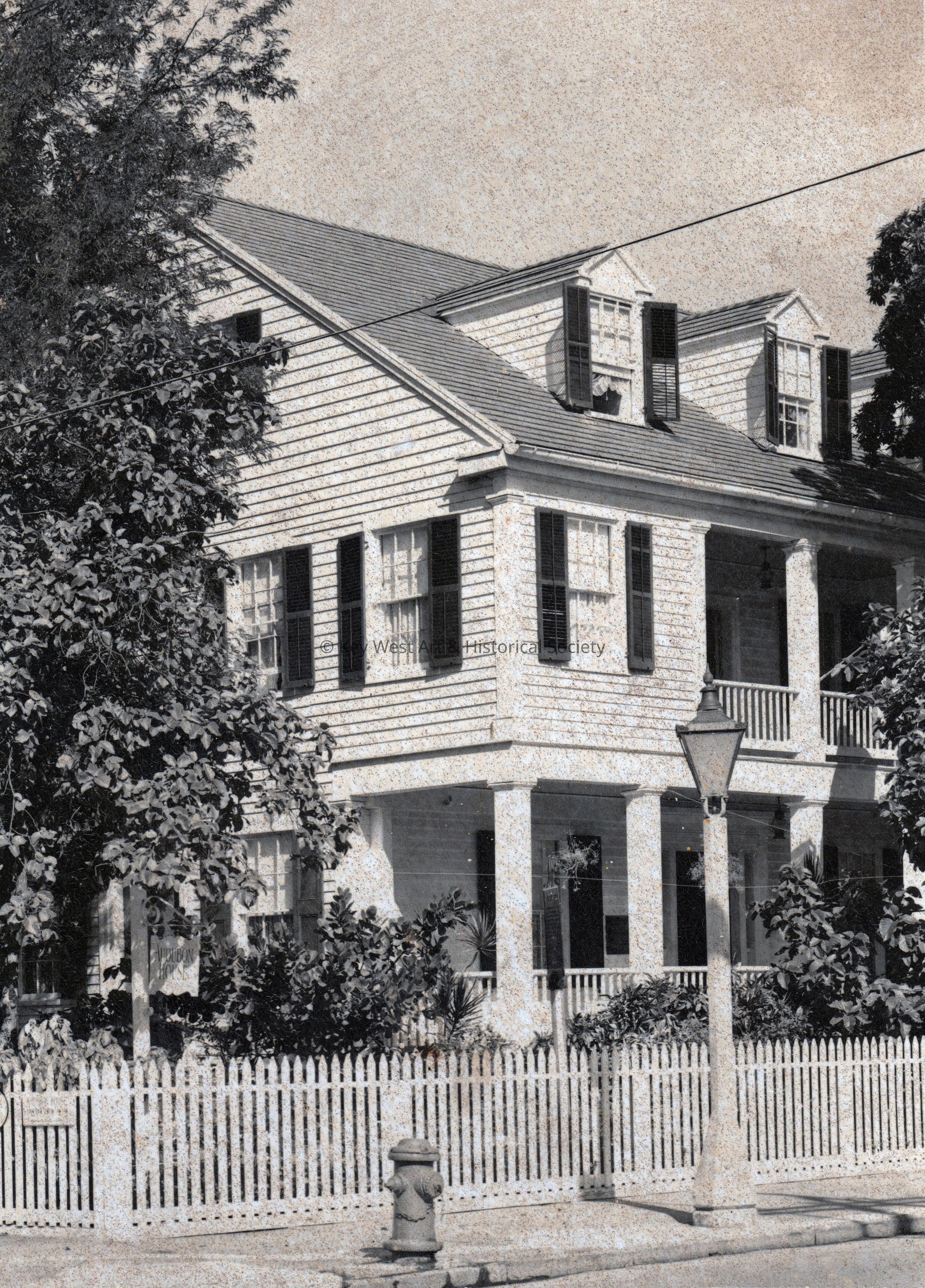 Black and white photograph of the Audubon House at 205 Whitehead Street. The house was originally built by Captain John Huling Geiger, who was Key West's first harbor pilot.