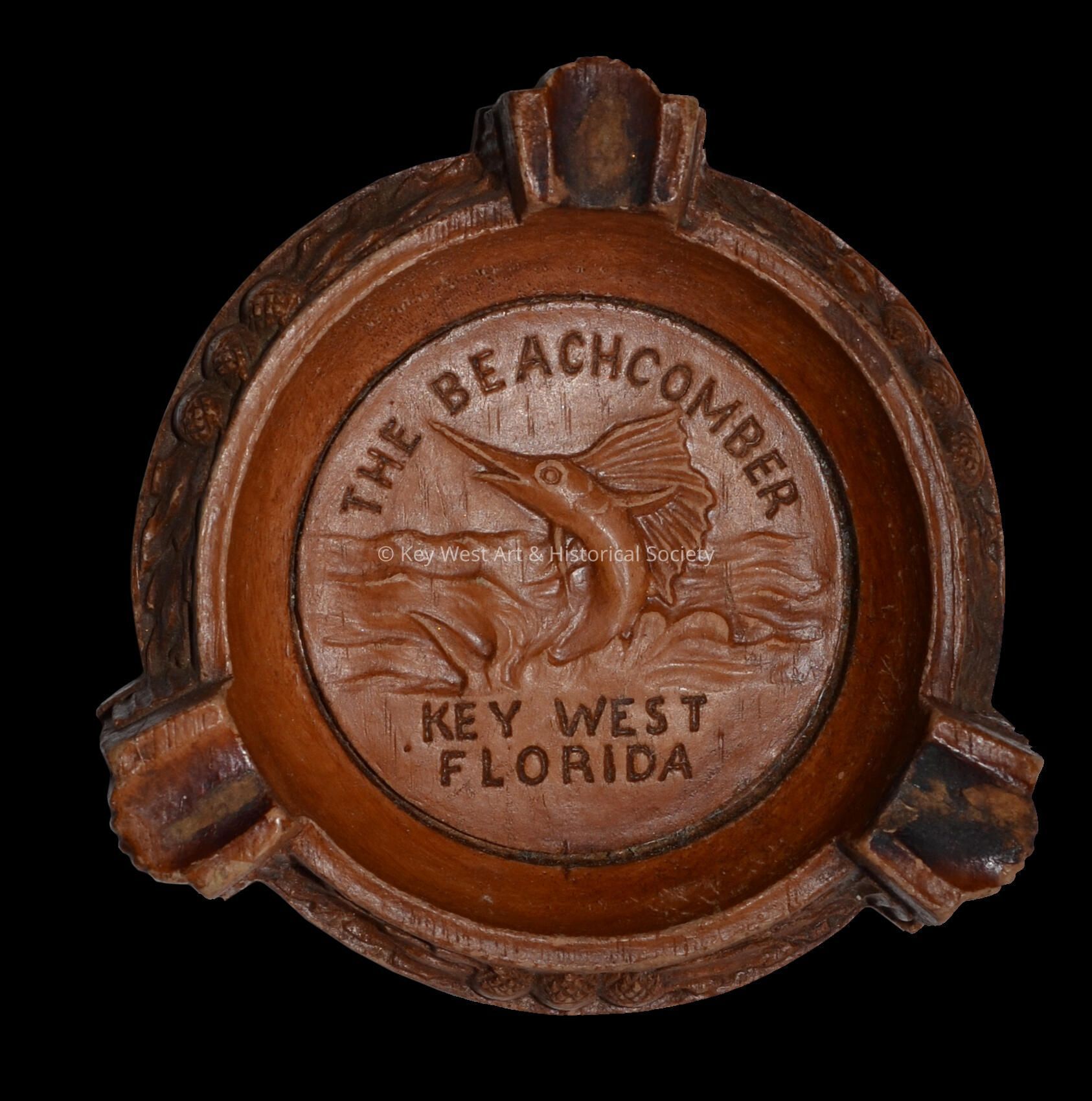 A burwood ashtray from The Beachcomber in Key West.