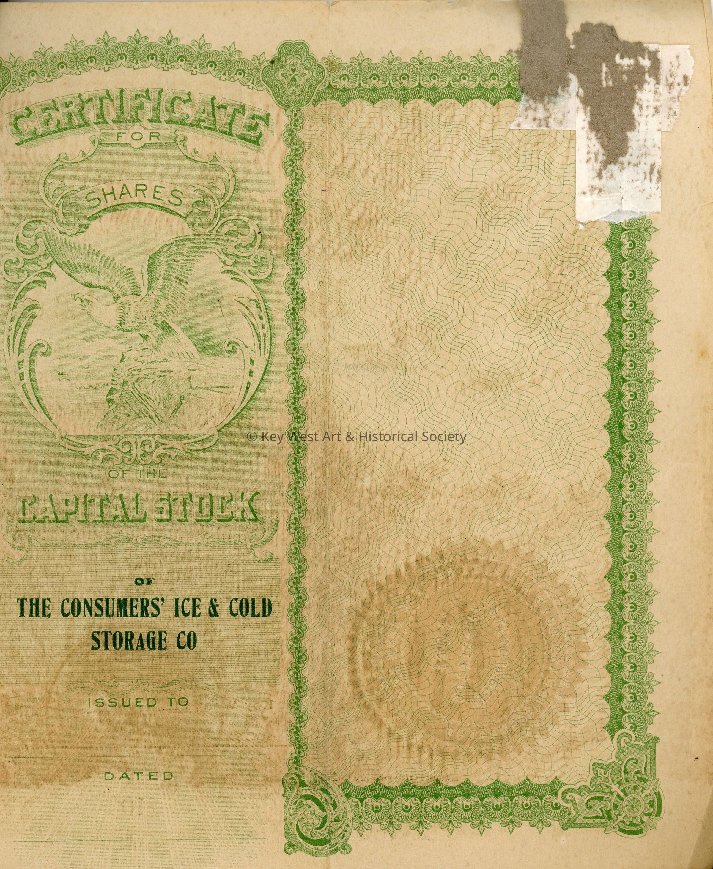 The Consumers' Ice & Cold Storage Co. Stock CertificatesEntry/Object ID