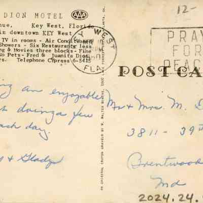 Postcard depicting the Dion Motel located at 512 Truman Avenue, Key West, Florida.