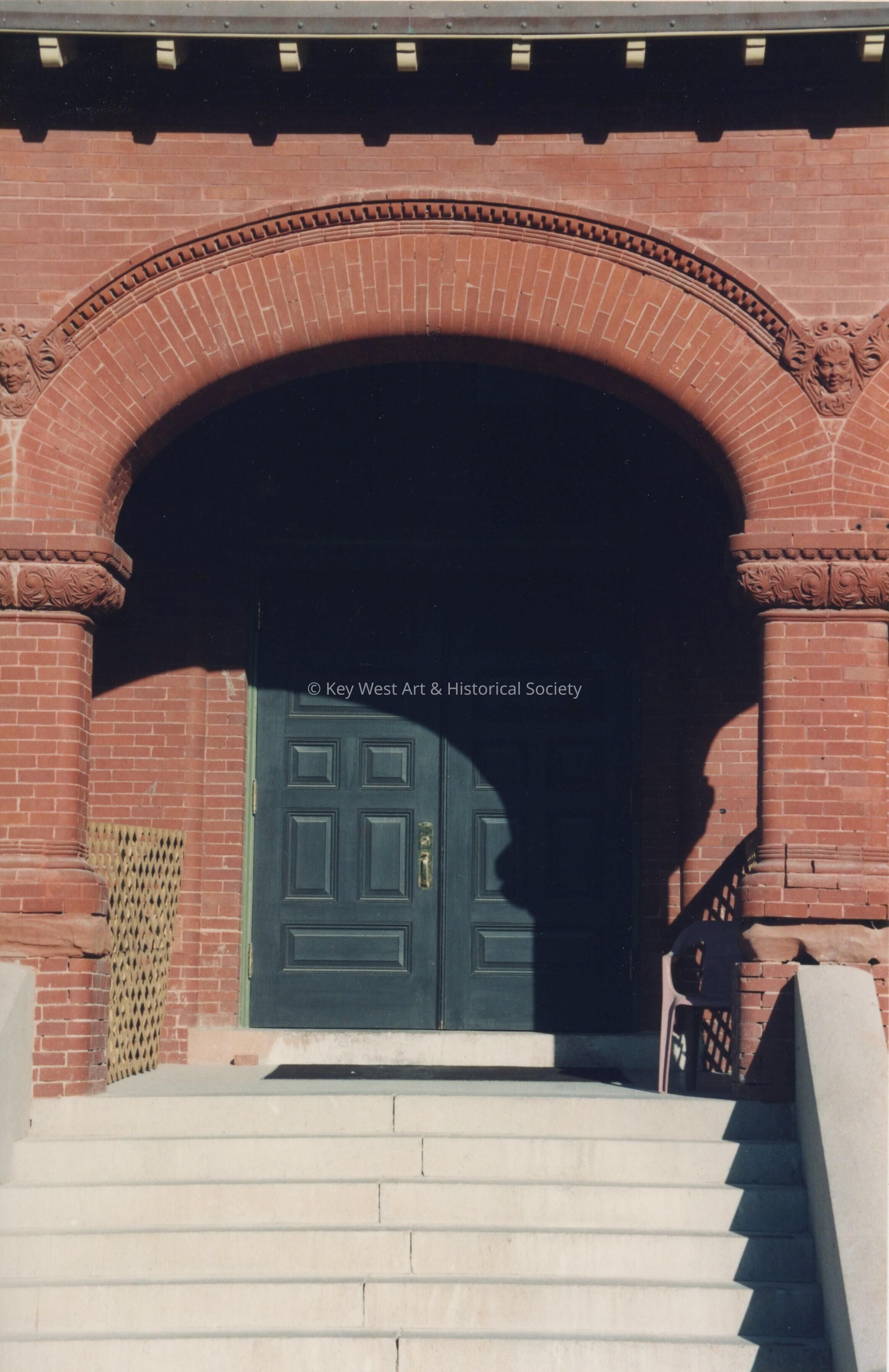 The front door and brick archway.