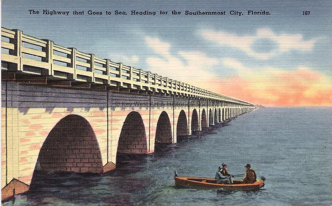 Postcard of the 7 mile bridge. "Highway that Goes to Sea. Heading for the Southernmost City, Florida".Collection