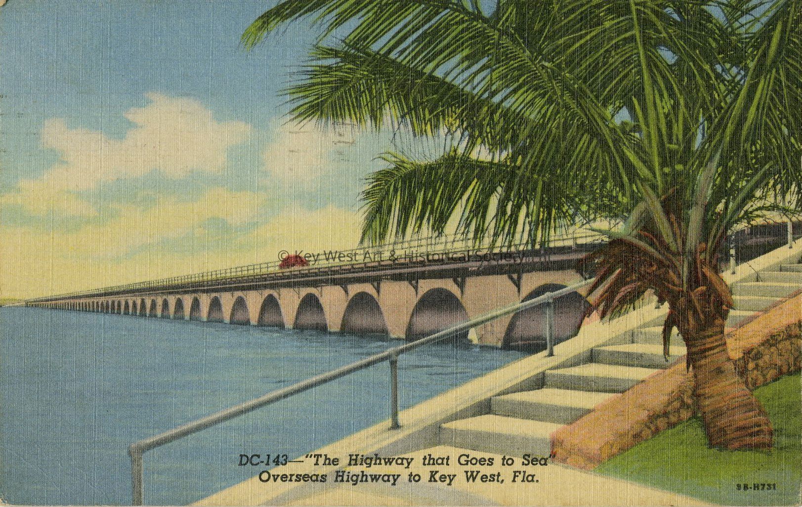 Postcard depicting the highway that goes to sea, Overseas Highway to Key West, Fla.Collection