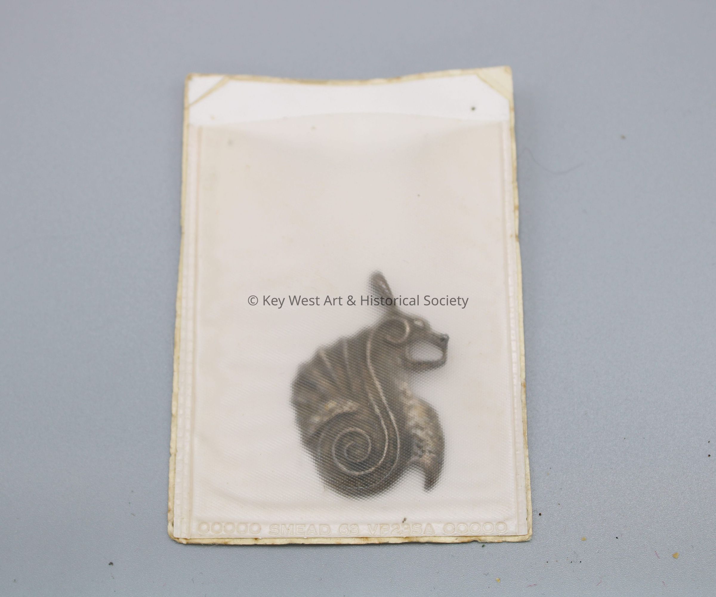 Sterling silver pendant given to Nancy Loewy for working at The Monster Restaurant and Discoteque when it closed. The Monster was once located at 400 Front Street in Key West.