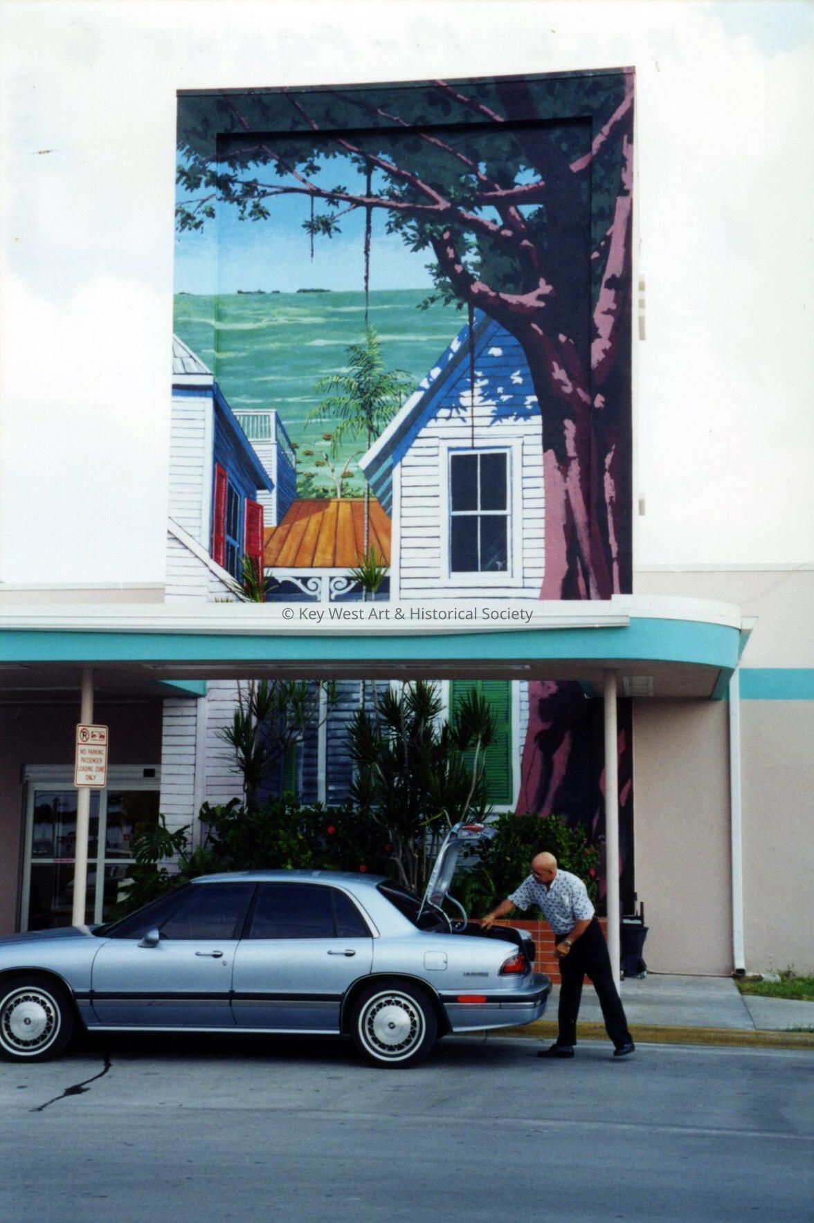 Color photograph taken by historian James M. Goode of a mural at the Key West Airport entitled 'The Nitch' by Rick Worth during a trip to Key West in August 2001. Printed from Roll 17.