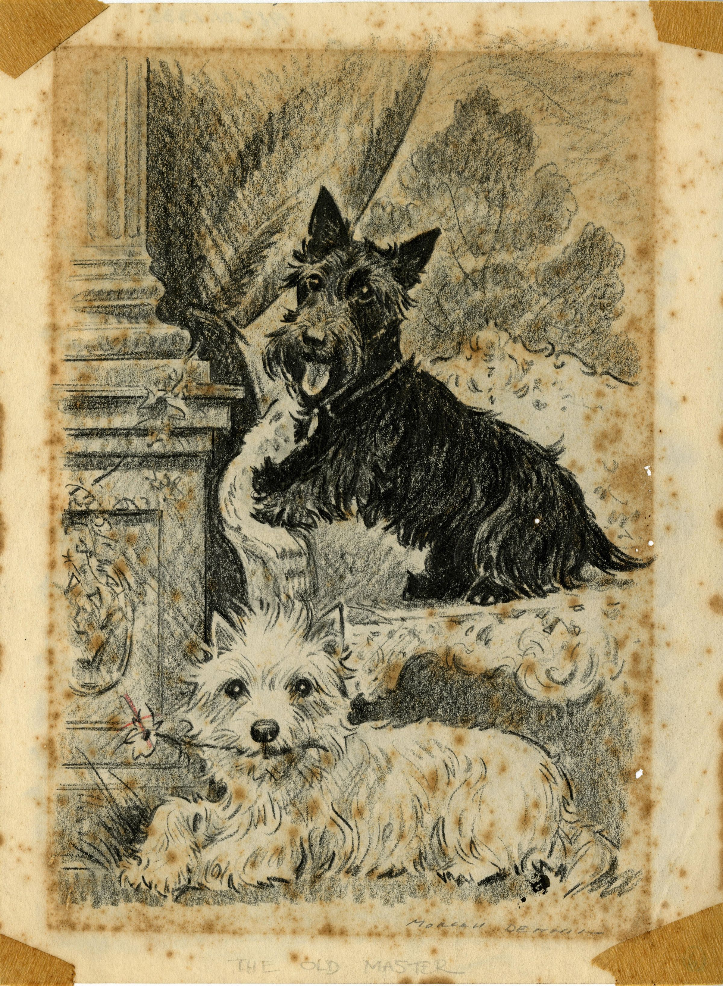 A pencil sketch on paper created by Morgan Dennis. The sketch depicts two dogs.Type of Drawing