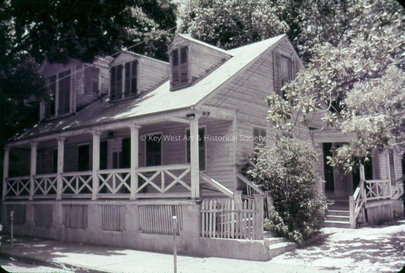 Color 35mm slide depicting the Oldest House at 322 Duval Street. Caption on slide casing reads, 'Oldest House in Key West built by Sea Captain in 1825'.