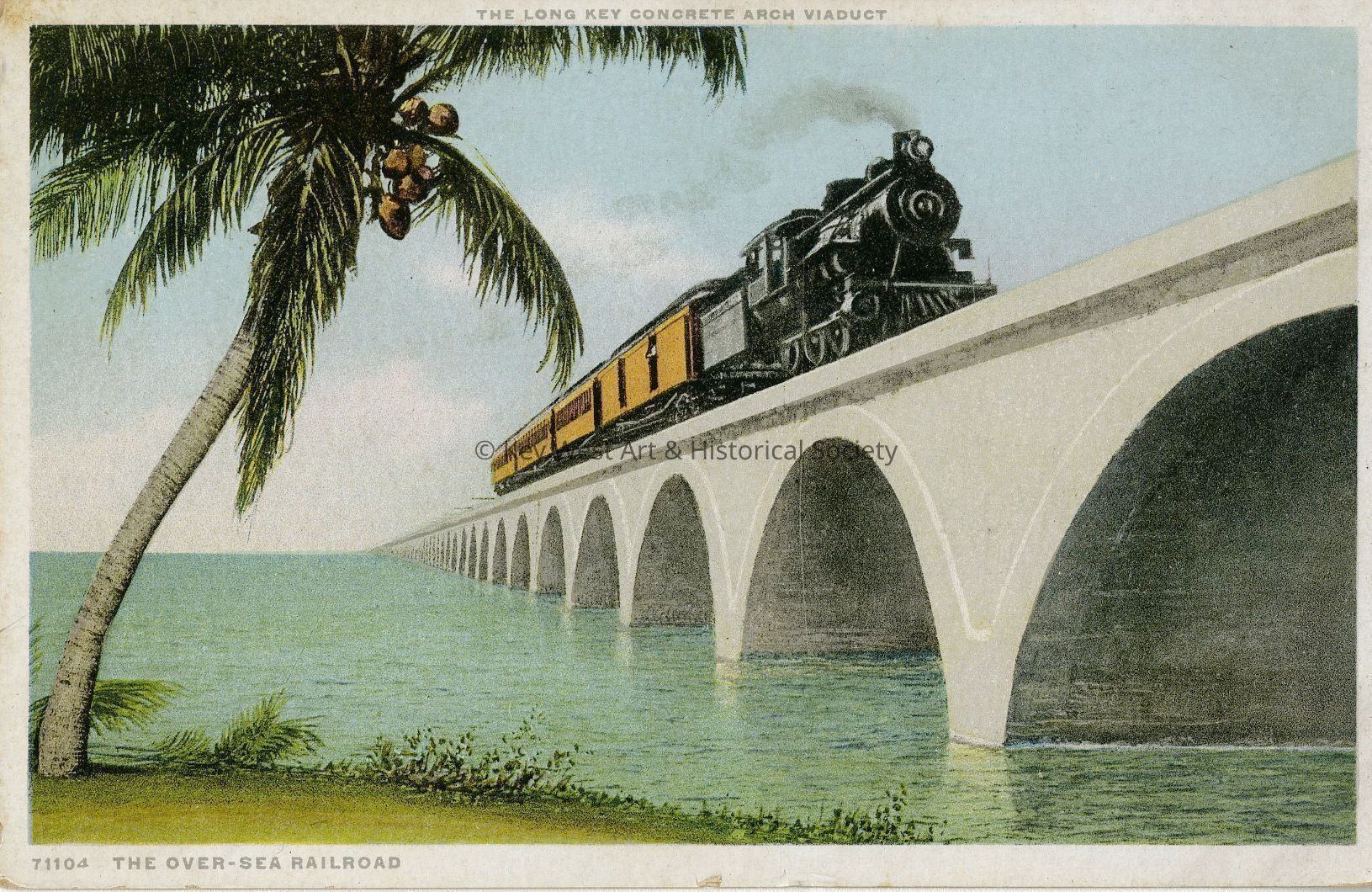 Postcard of Henry Flagler's Oversea Railway crossing Long Key Viaduct.