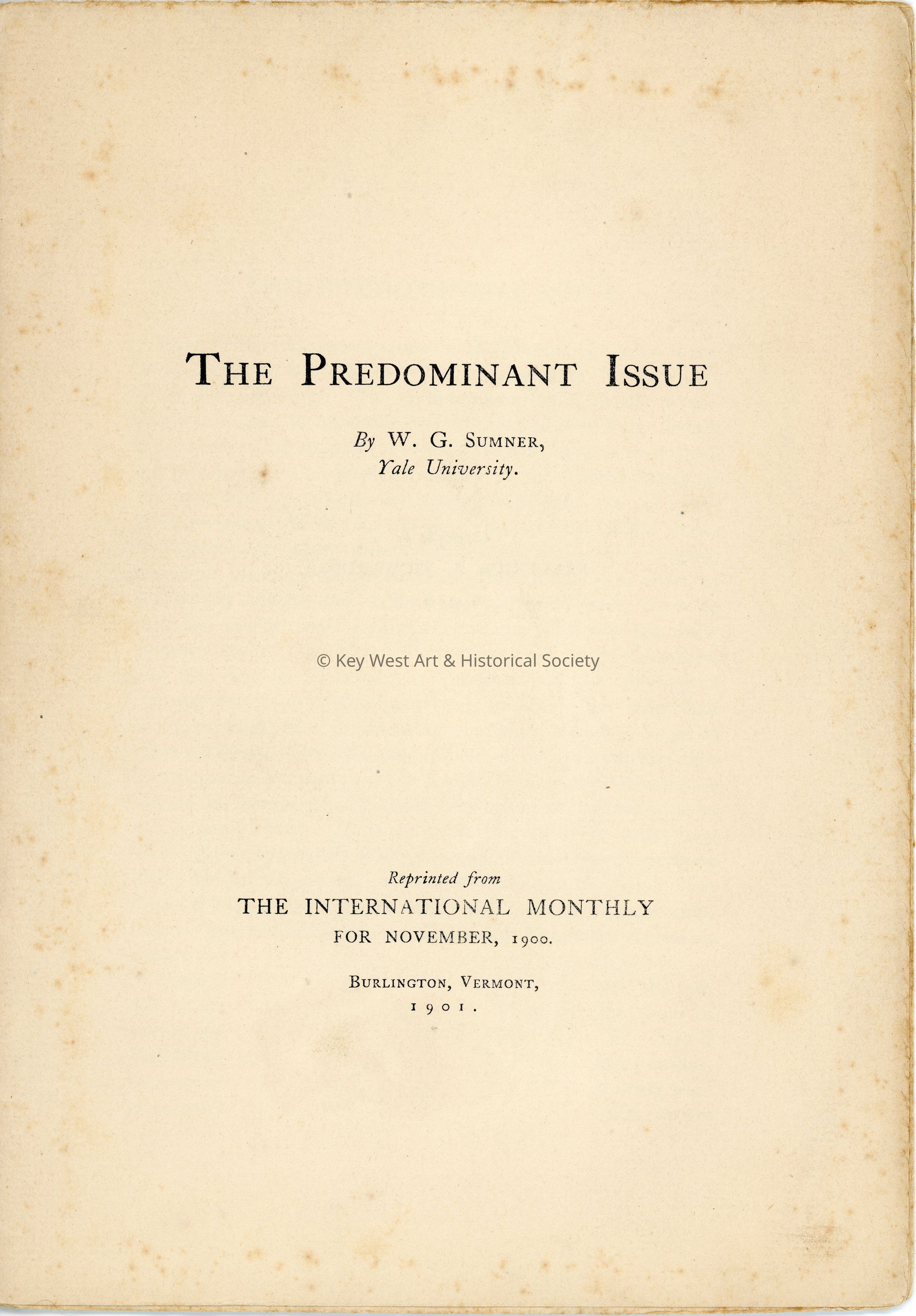 An essay by William Graham Sumner of Yale University which addresses the issue of expansionism, particularly as it relates to the Spanish-American War and the annexation of the Philippines.Collection
