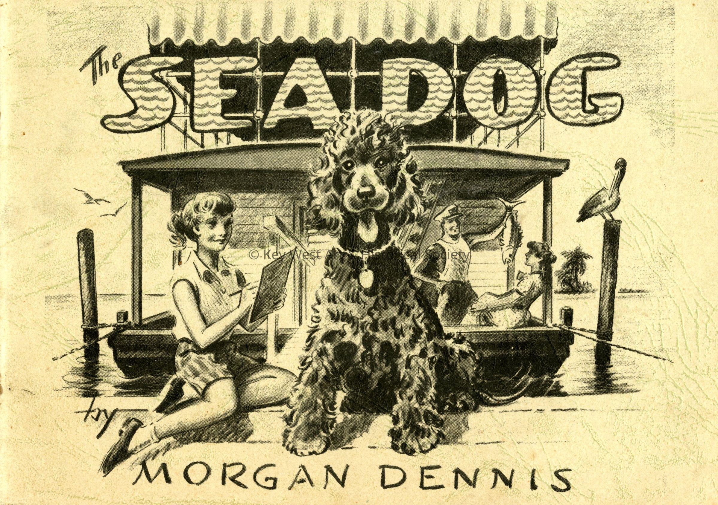 Softcover book entitled 'The Sea Dog' that was written and illustrated by Morgan Dennis. It chronicles the life of a Irish Water Spaniel named Splash living with his family on a houseboat in Key West.