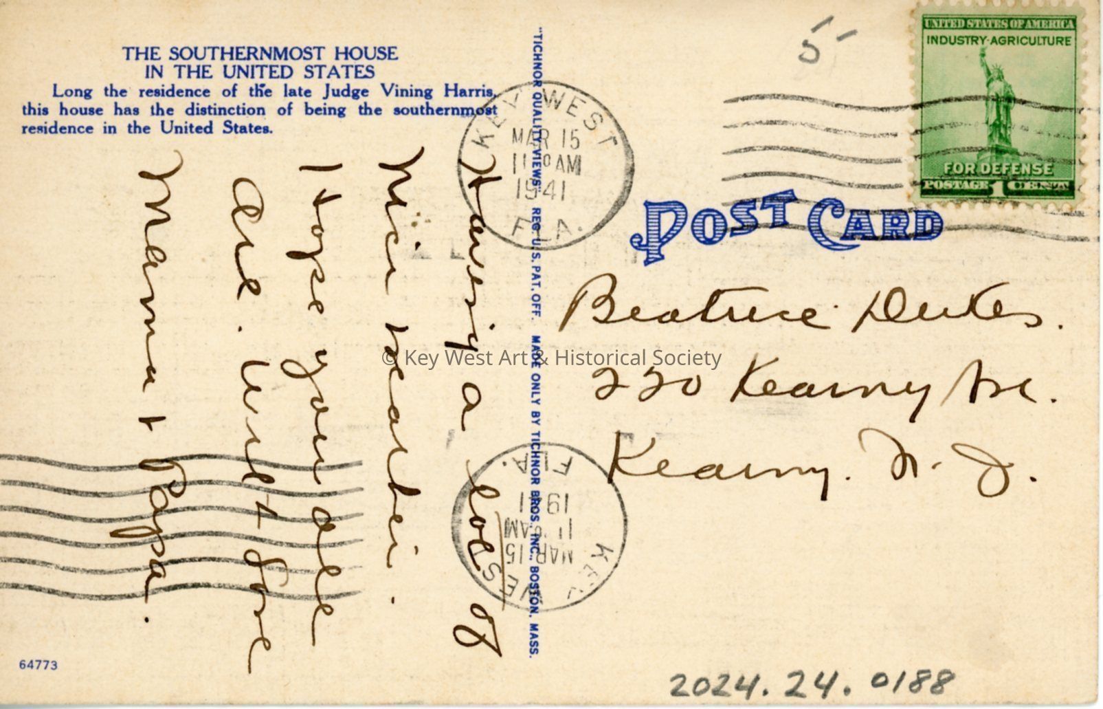 Postcard depicting the Southernmost House in the United States, Key West, Florida.Collection