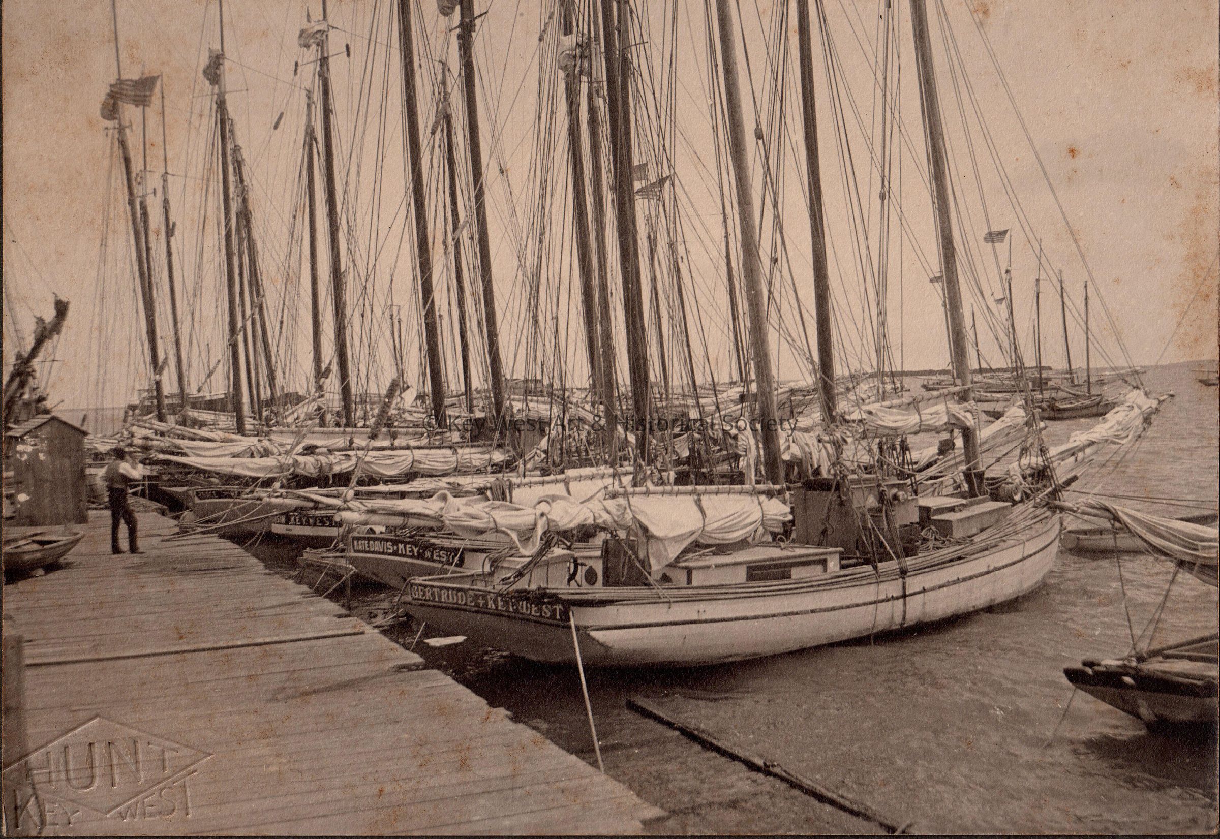 The sponge fleet, including the GERTRUDE, at the dock in Key West.Collection