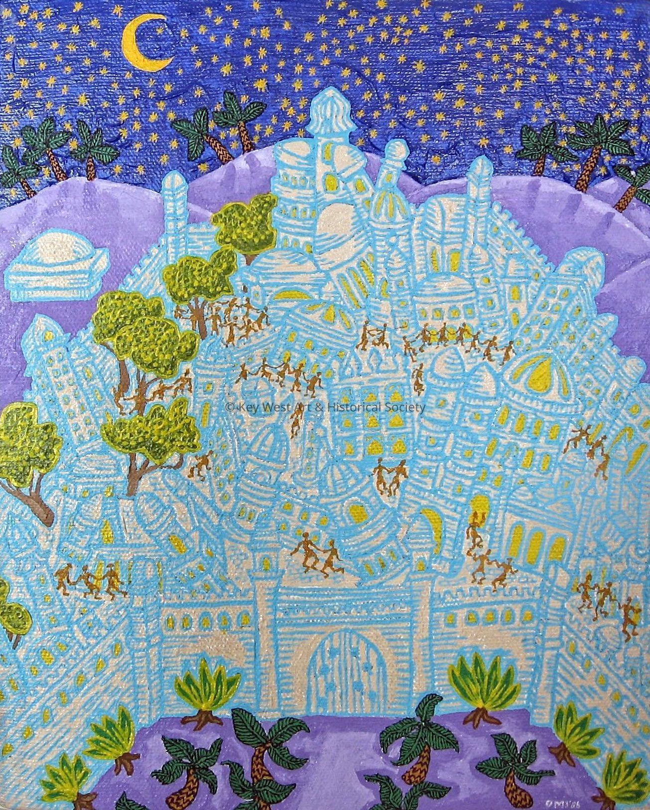 Acrylic on canvas depicting a segment of the Book of Judith from the Bible. The scene shows the Jewish city of Bethulia following the foiled siege by Holofernes. One in a series of five paintings.Type of Painting