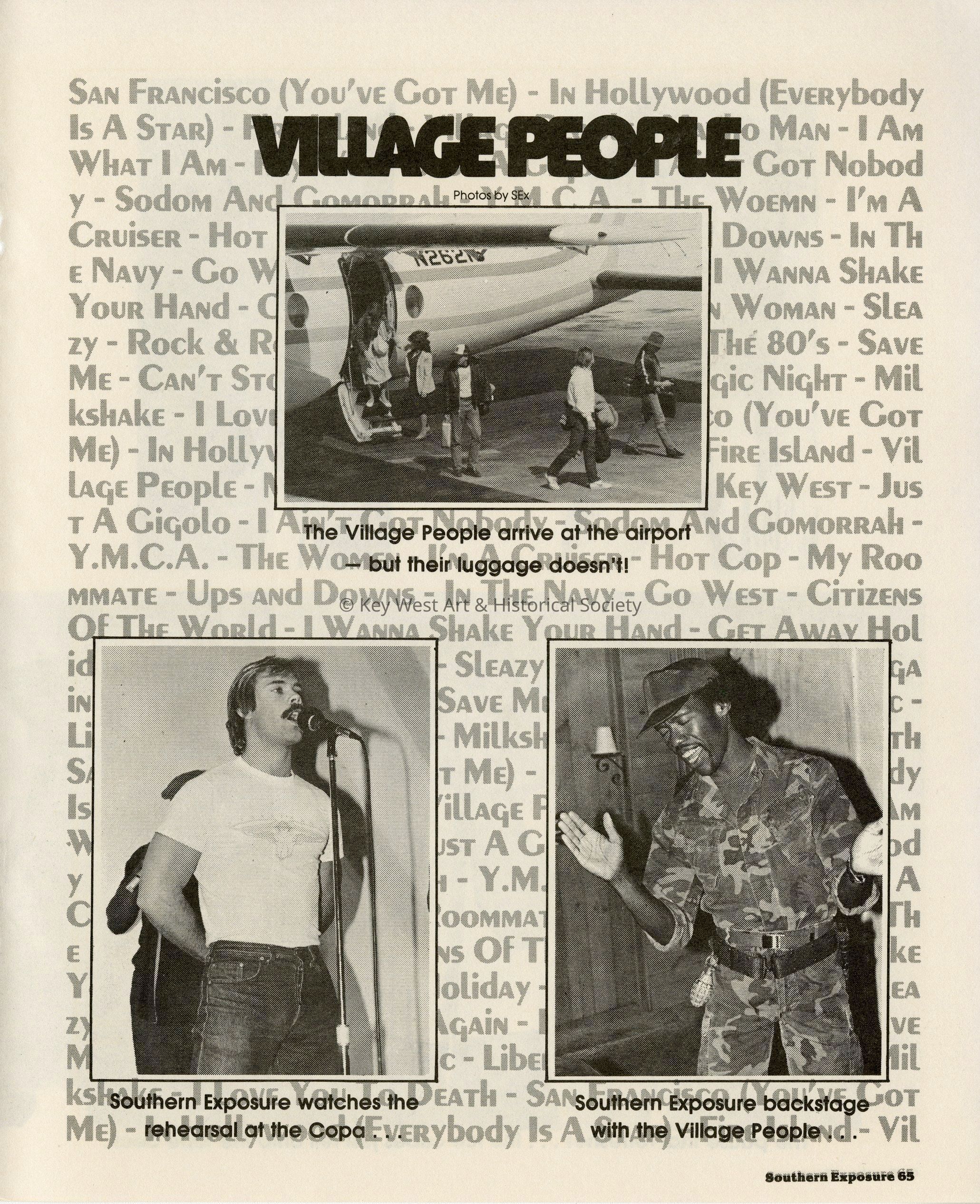 Multi page magazine spread of images taken at The Copa bar and nightclub when the Village People performed. Appeared in an issue of Southern Exposure magazine.Collection