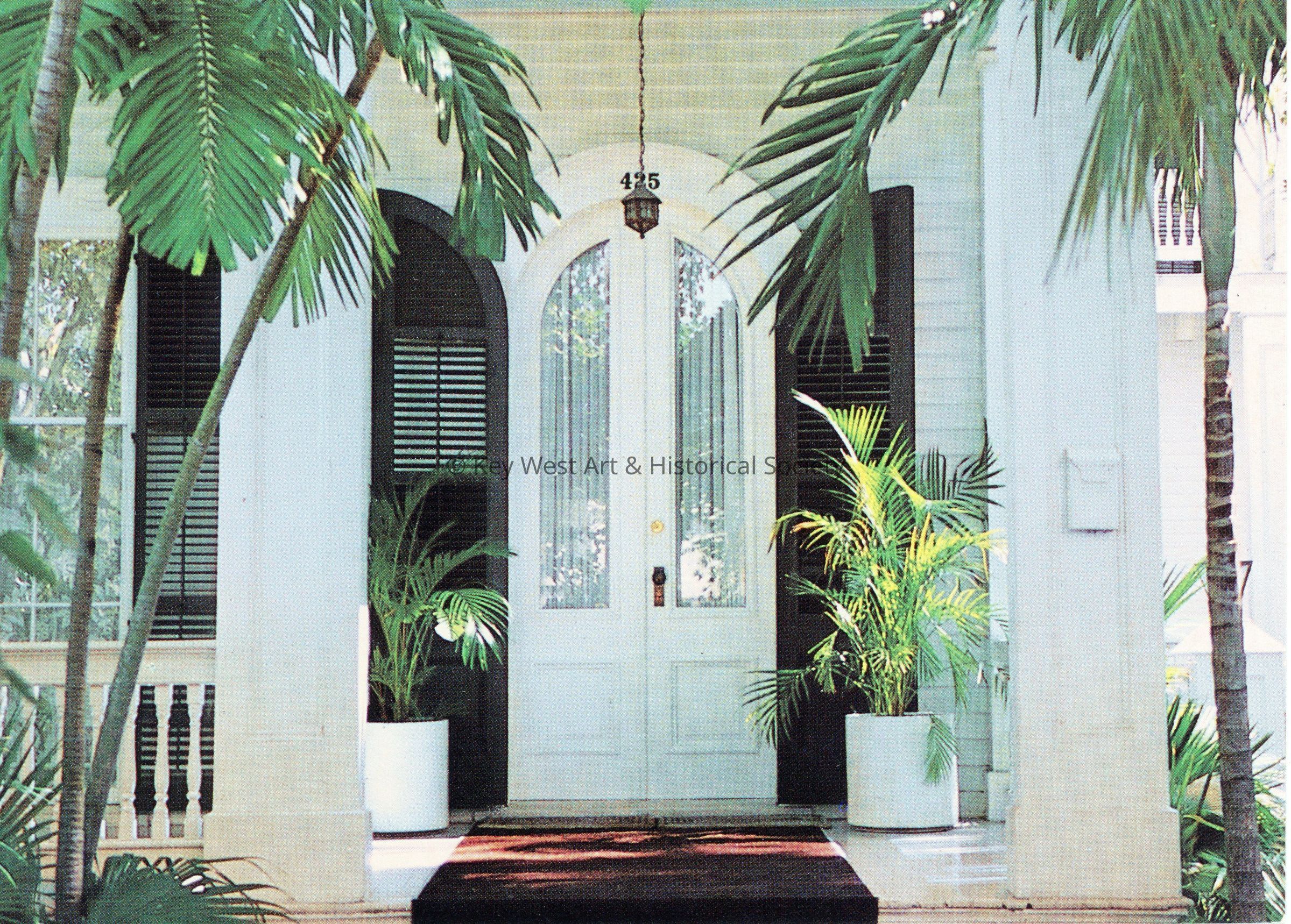 Postcard belonging to 'The Houses of Key West' series depicting the W. Hunt Harris House located at 425 Caroline Street. Notation on verso reads '17. THE W. HUNT HARRIS HOUSE, C. 1900. Careful and tasteful restoration of this arched entryway have contributed to the quiet elegance and serenity of one of Key West's finest homes.'Subject Place