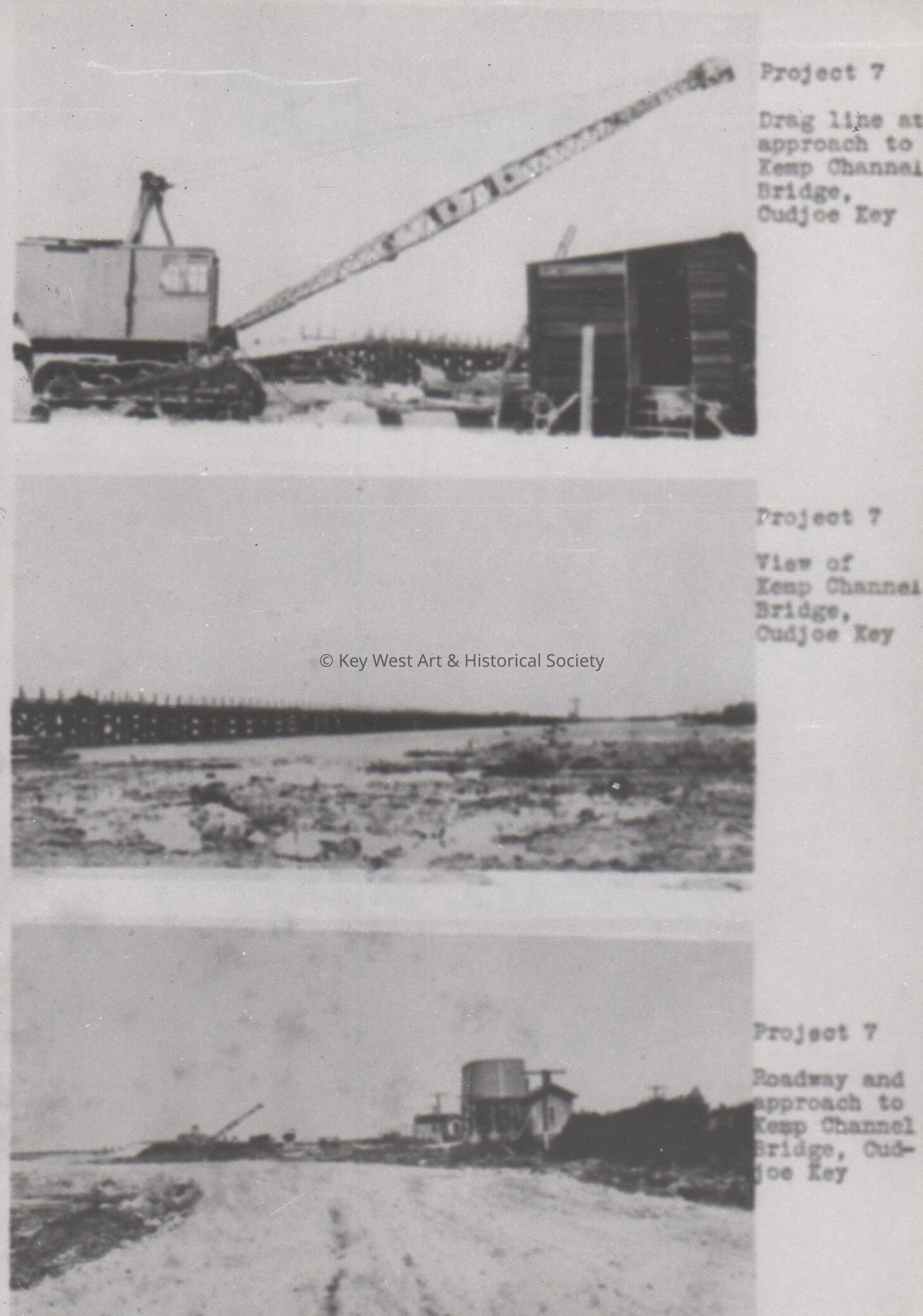 Project 7, Drag line at approach to Kemp Channel Bridge, Cudjoe Key. Project 7, View of Kemp Channel Bridge, Cudjoe Key. Project 7, Roadway and approach to Kemp Channel Bridge, Cudjoe Key.