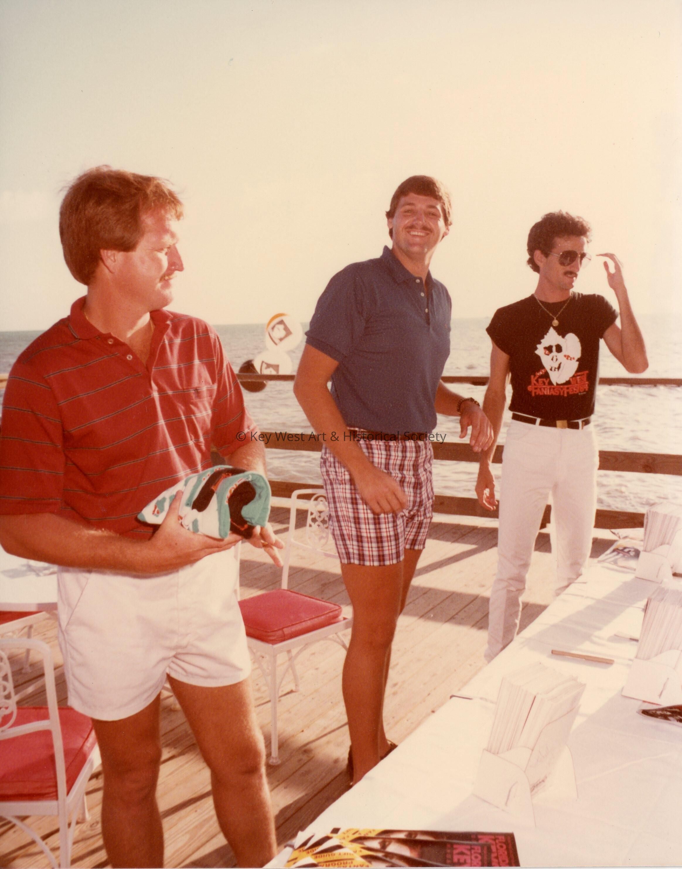 Three unknown men at some sort of FF party.