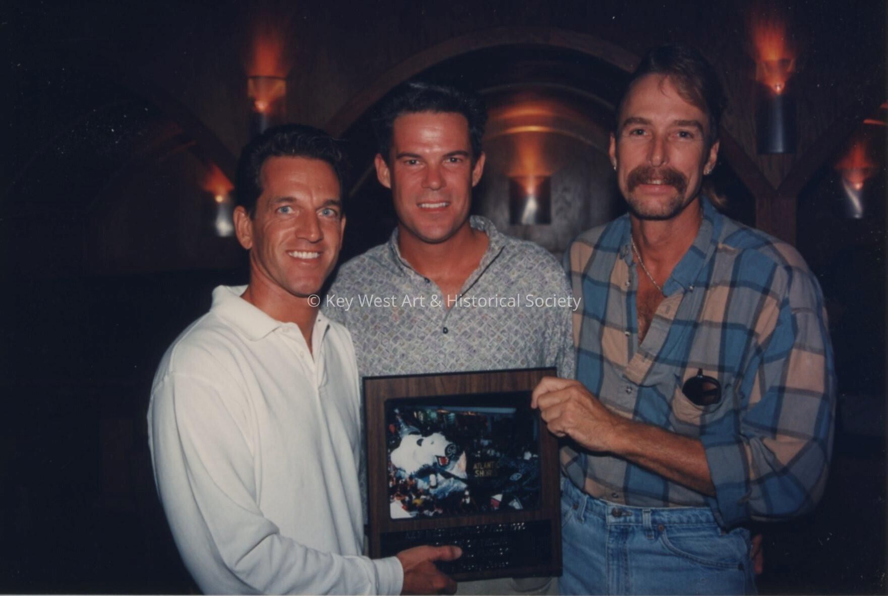 Three unknown men at the Call of the Wild awards ceremony.Entry/Object ID