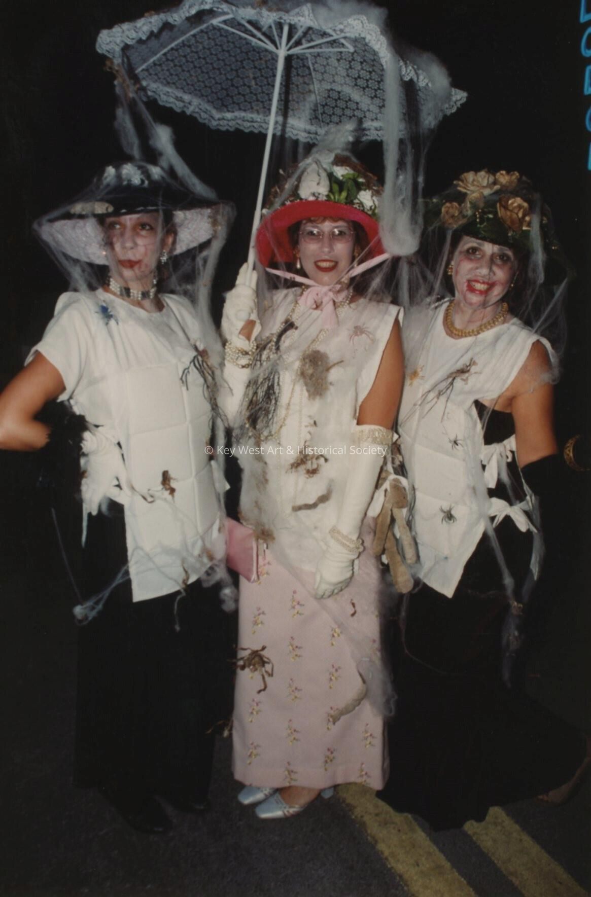 Three unknown woman dressed up.
