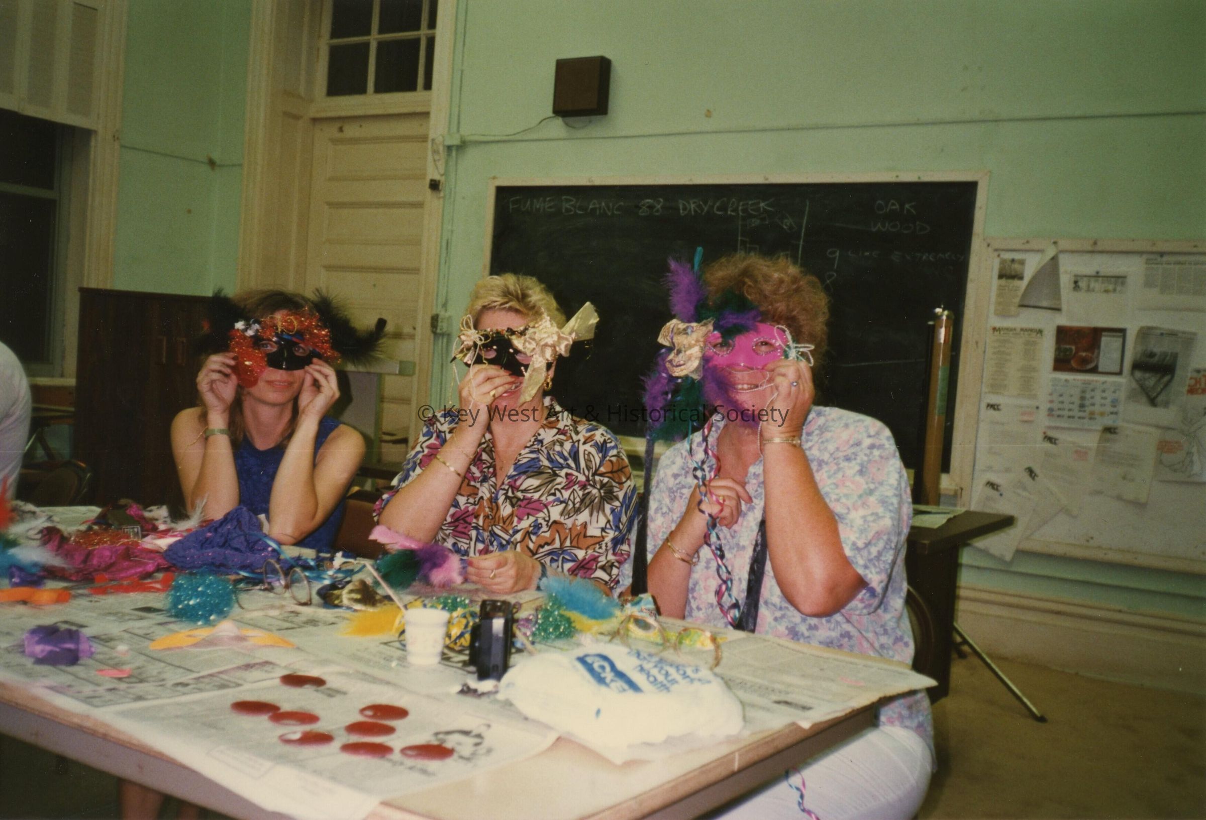 Three unknown woman sitting at a table making face mask.Entry/Object ID