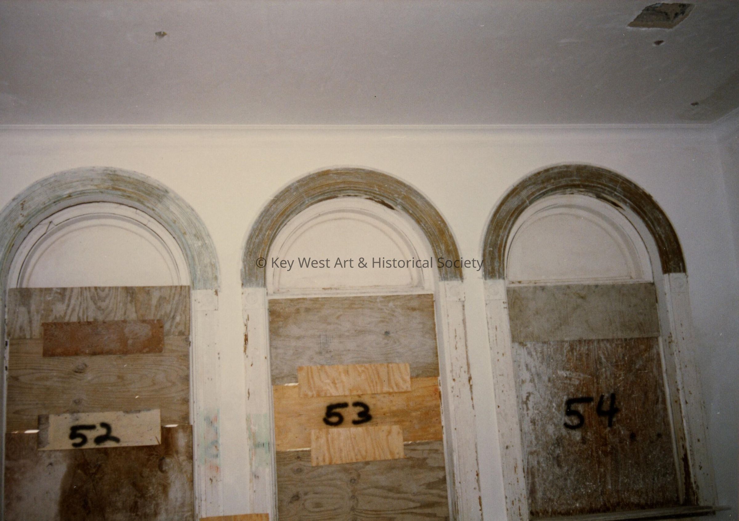 Three windows labeled with the numbers 52,53, and 54.Collection
