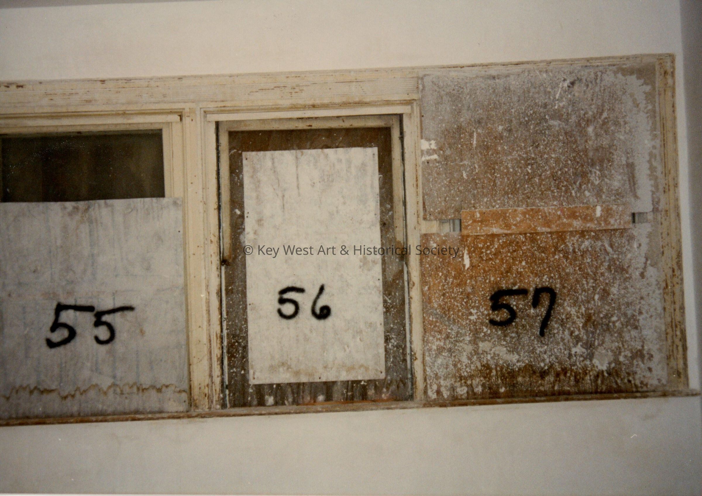 Three windows labeled with the numbers 55,56, and 57.Collection
