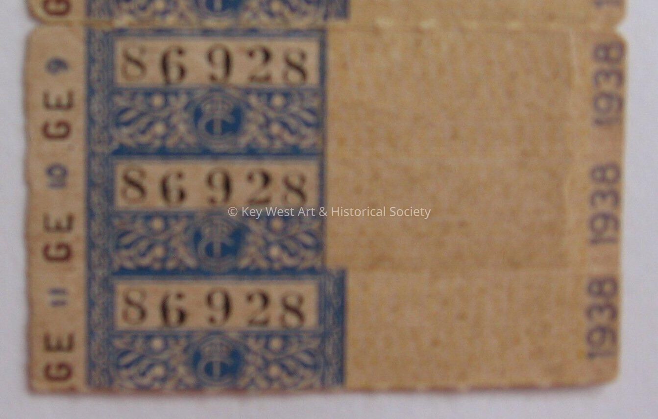French lottery ticket from 1938 2 of 4. Ticket has three perforated sections with the number 86928 printed in blue ink. On the side of each section is GE 9, GE 10, GE 11. On the back is an ad for BYRRH in brown ink. From wallet,Collection