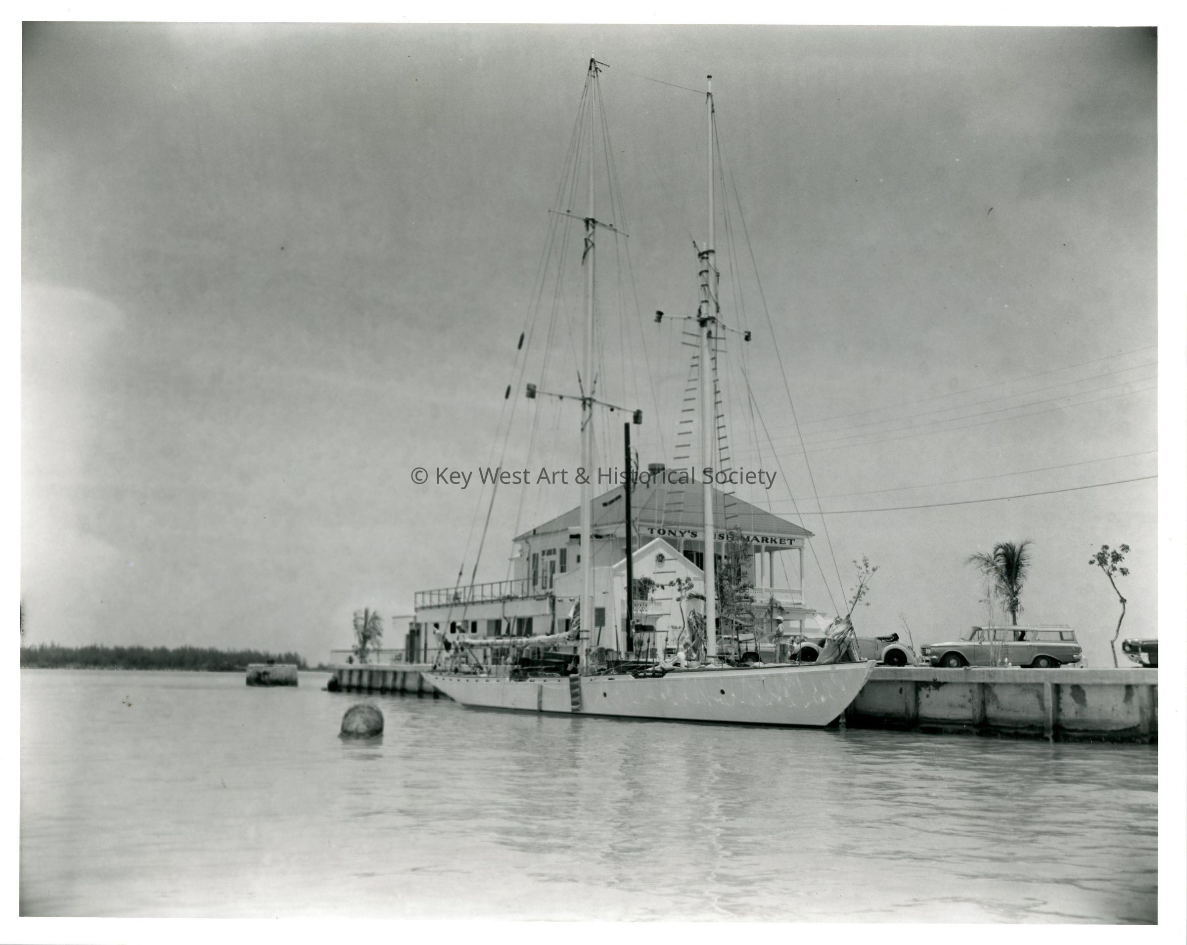 Black and white photograph of Tony's Fish Market located at 1 Duval Street at the present-day Pier House Hotel & Restaurant.