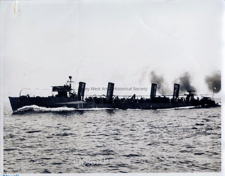 Port side view of the Torpedo Boat U.S.S. DECATUR at sea.