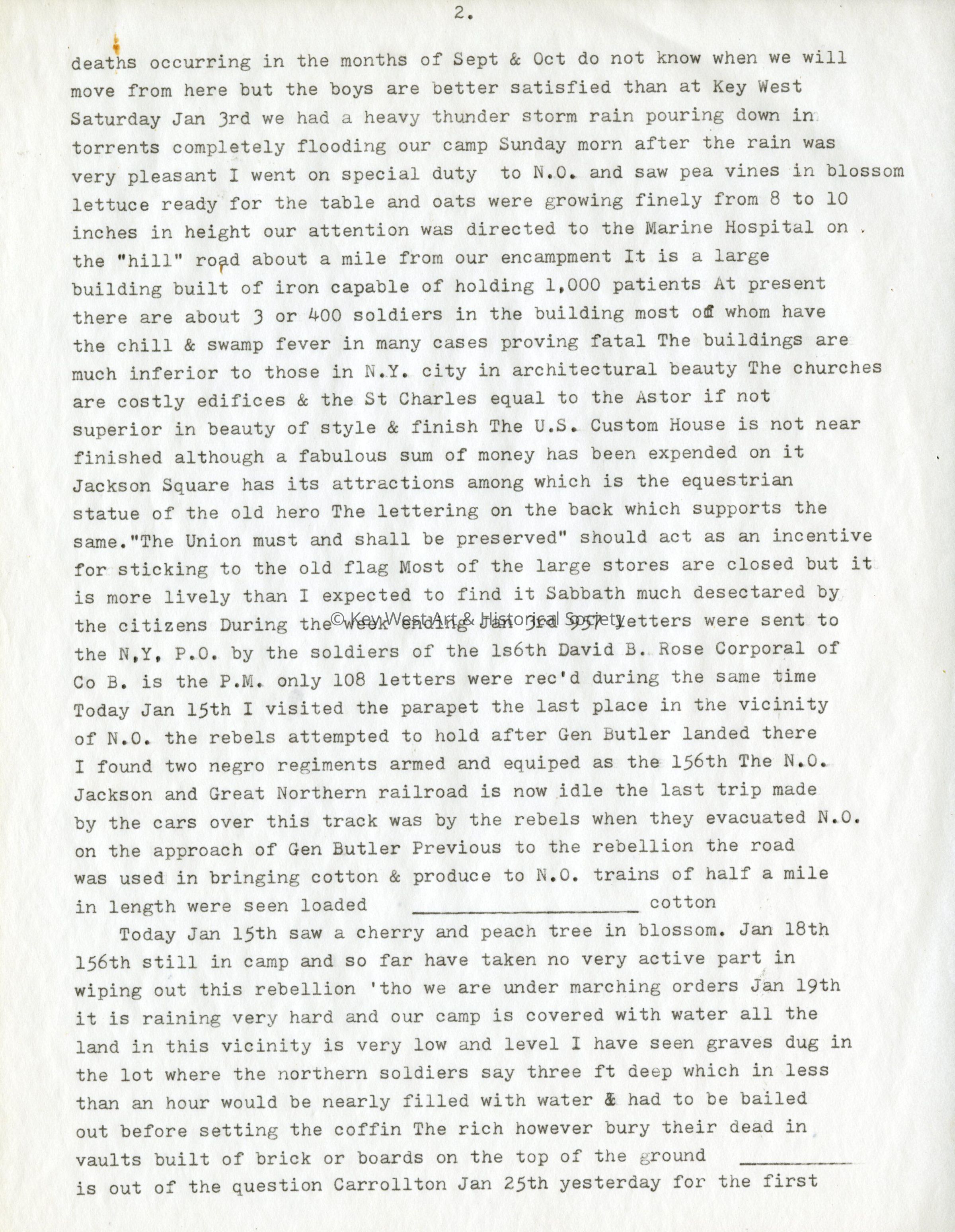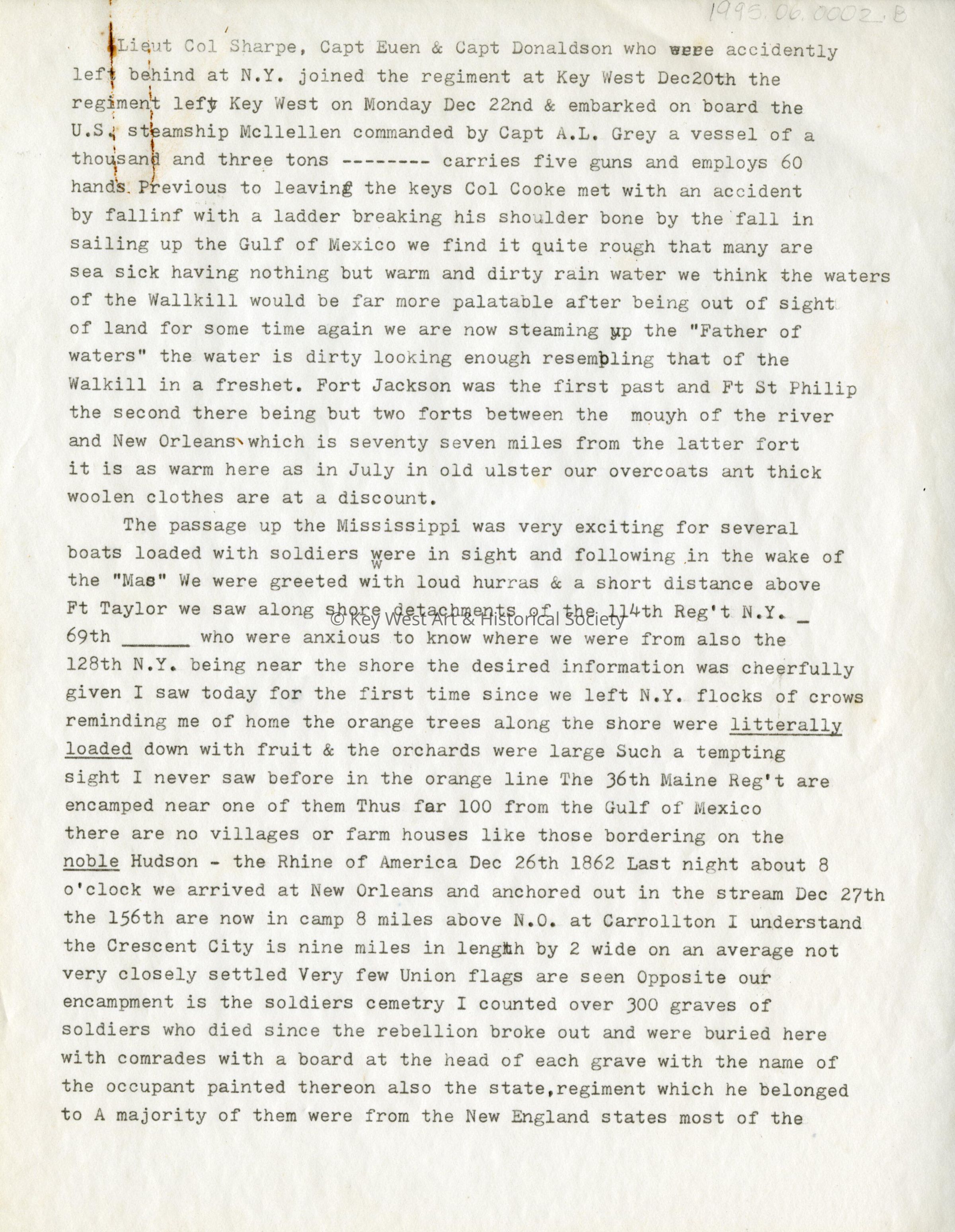 A typed transcript of the Civil War journal kept by Matthias Euen. Ten typed pages on onionskin paper (last page is blank). The journal recounts leaving Key West, sailing up the Gulf of Mexico to the Mississippi River and New Orleans.Collection