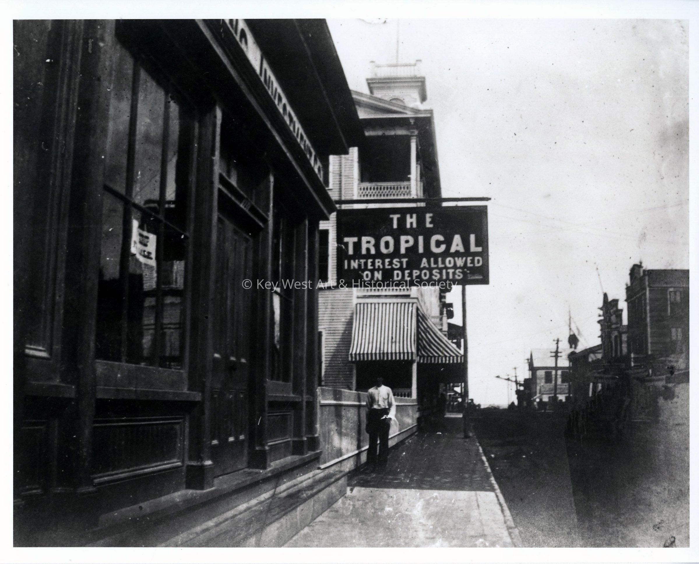 Black and white photograph of the Tropical Building and Investment Company at 124 Duval Street.