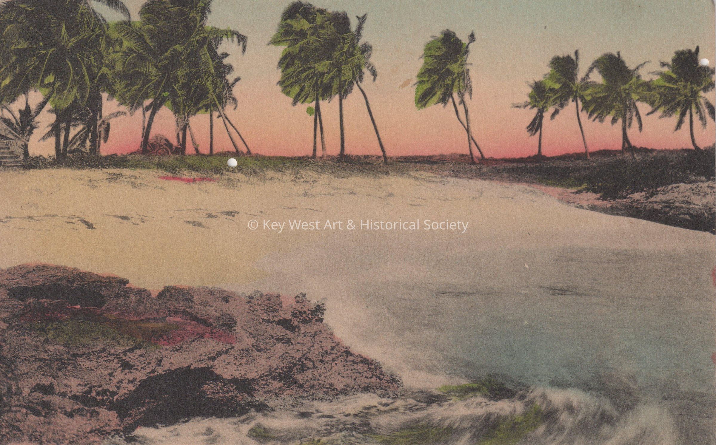 Postcard depicting palm trees on a beach. The description on the verso reads, ‘In a Tropical Paradise.’Collection
