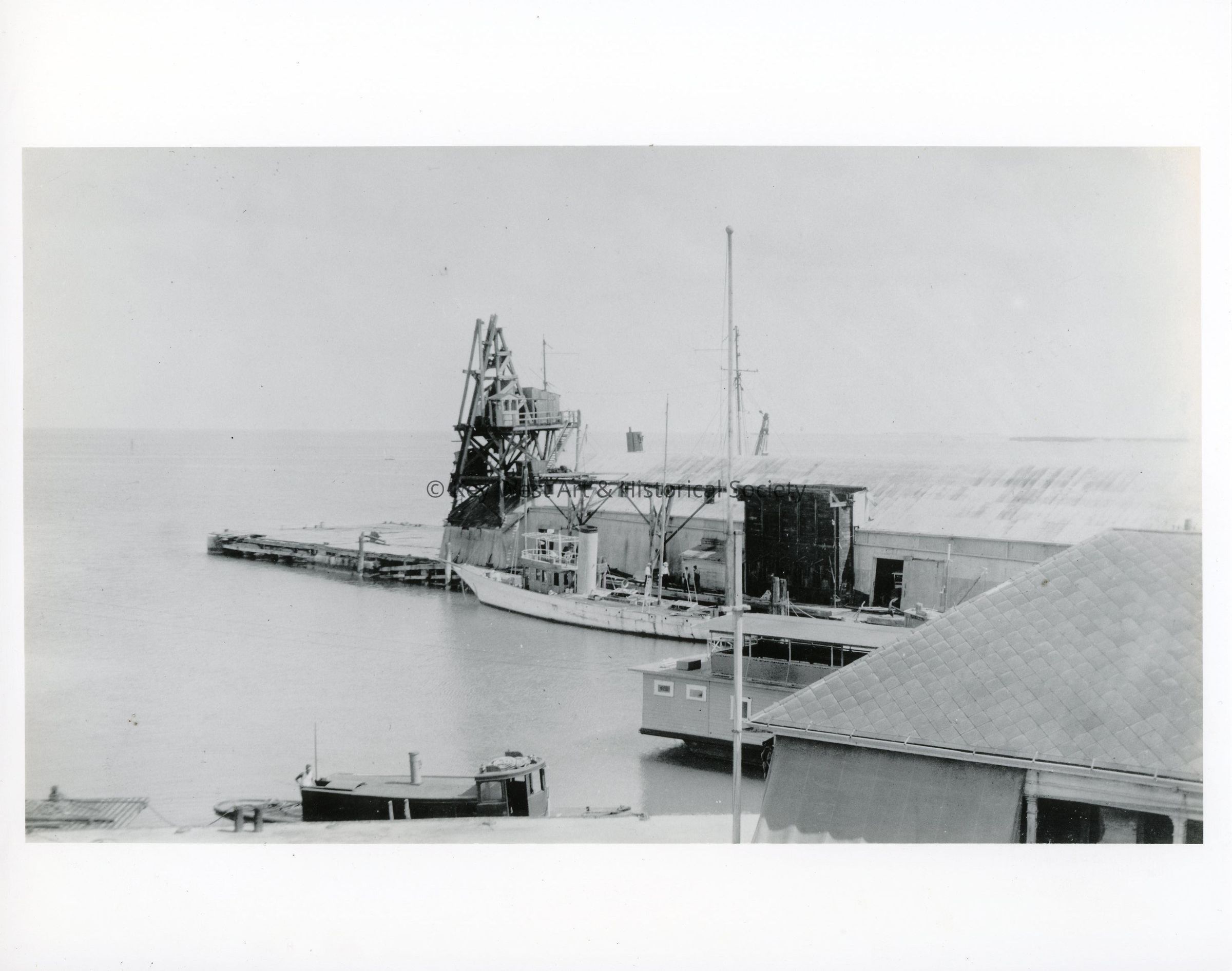 Black and white photograph of Pier D-1 at Trumbo Point at Naval Station Key West.