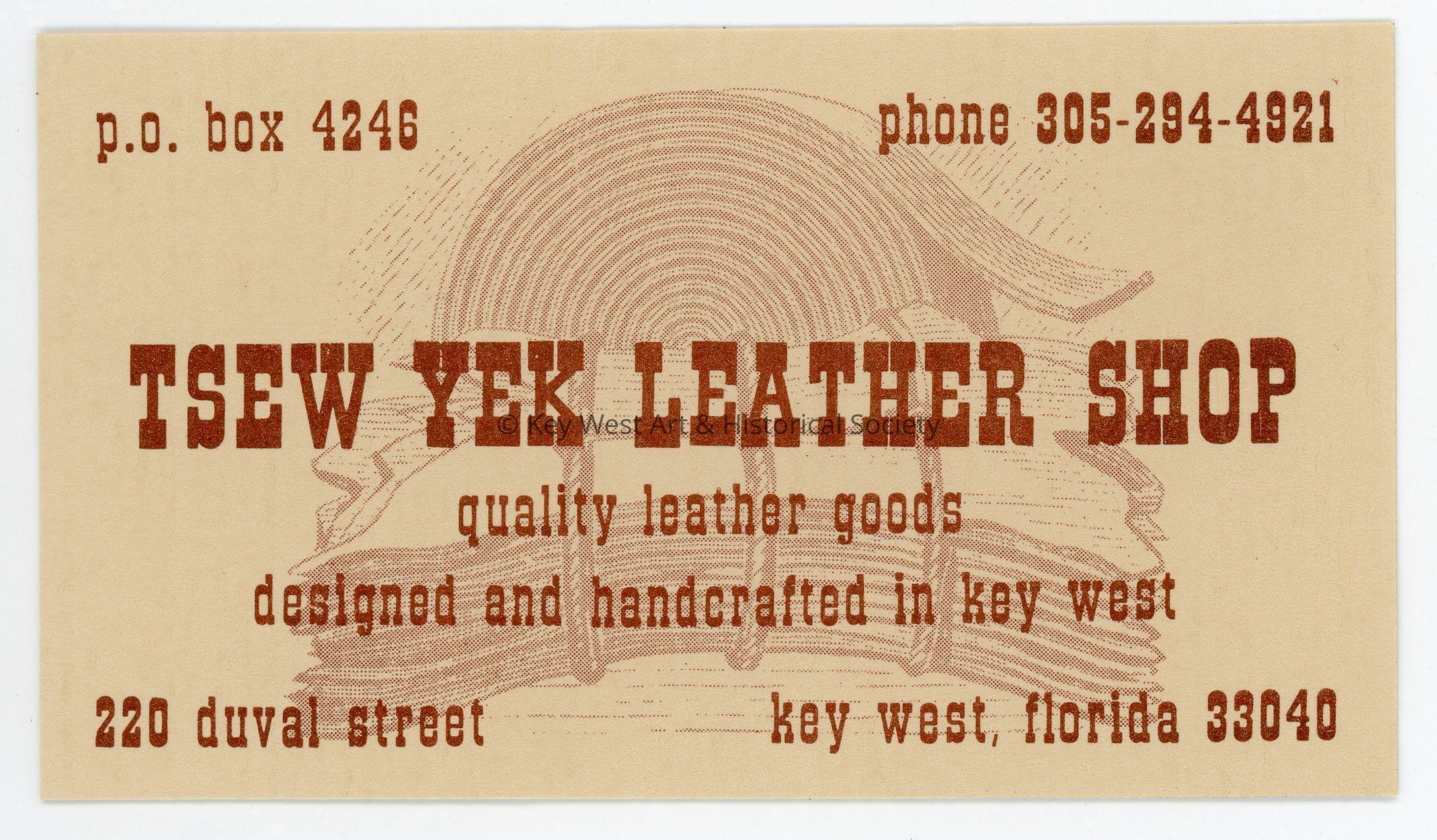 A business card for the Tsew Yek Leather Shop formerly located at 220 Duval Street.