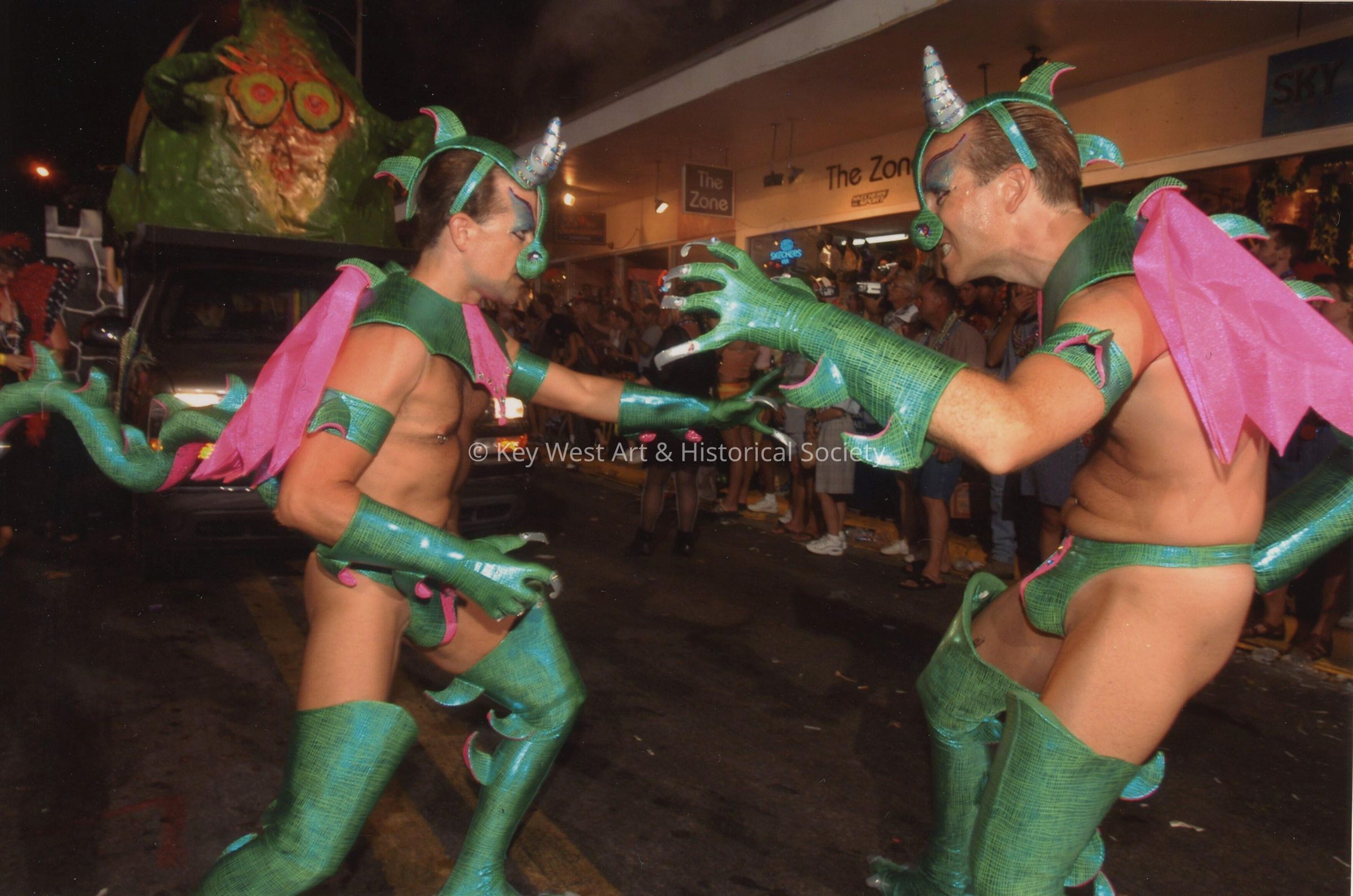 Two unknown people dressed up in the parade.