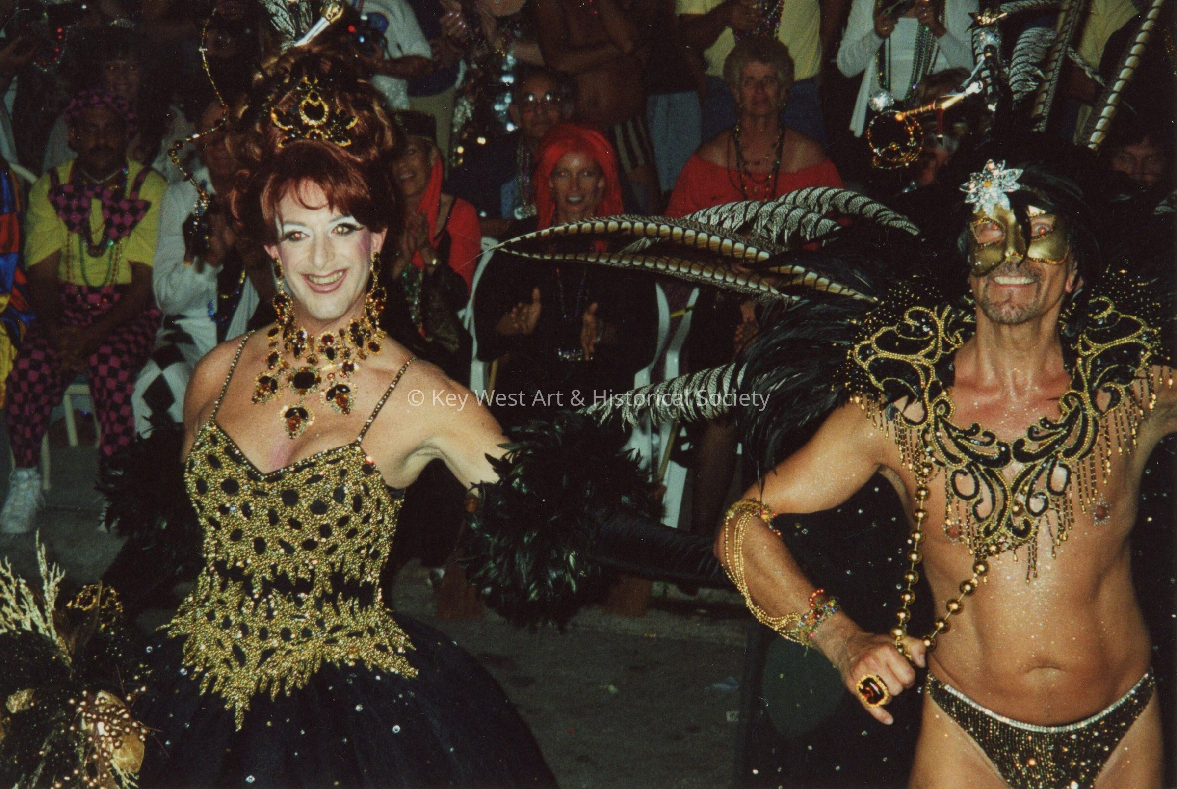 Two unknown people dressed up in the parade.