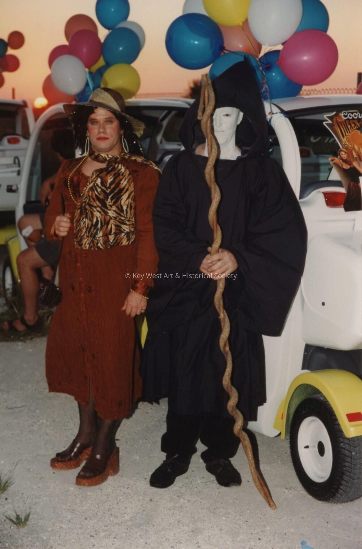 Two unknown people dressed up.