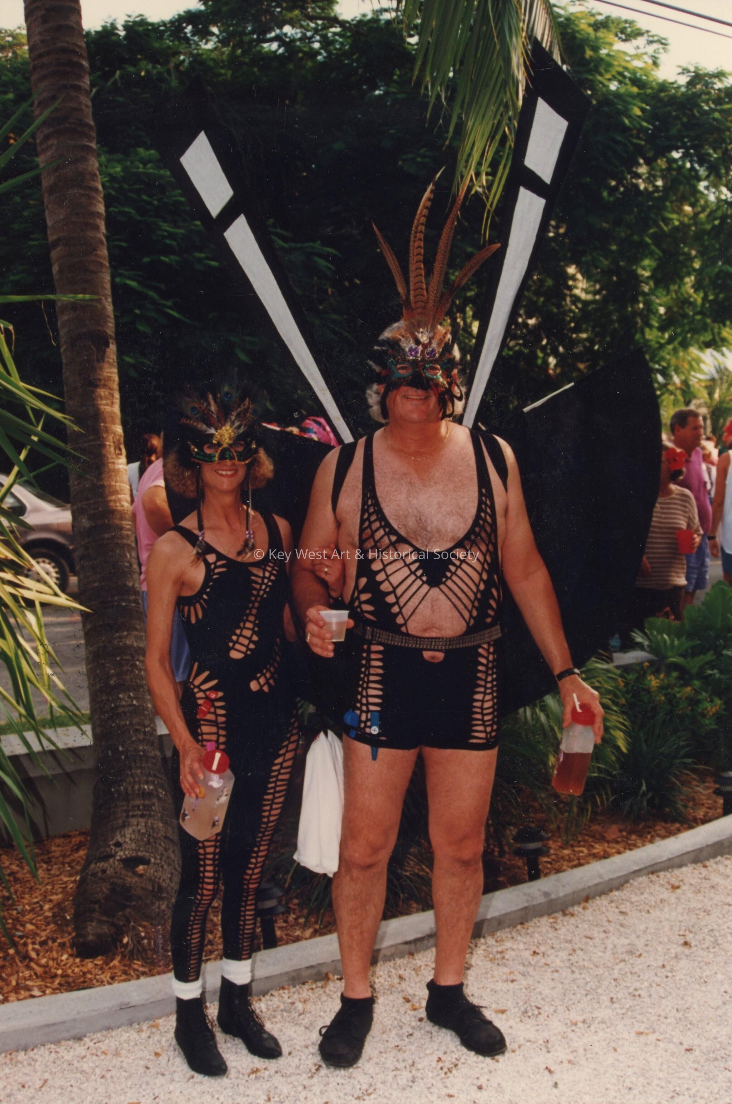 Two unknown people dressed up.