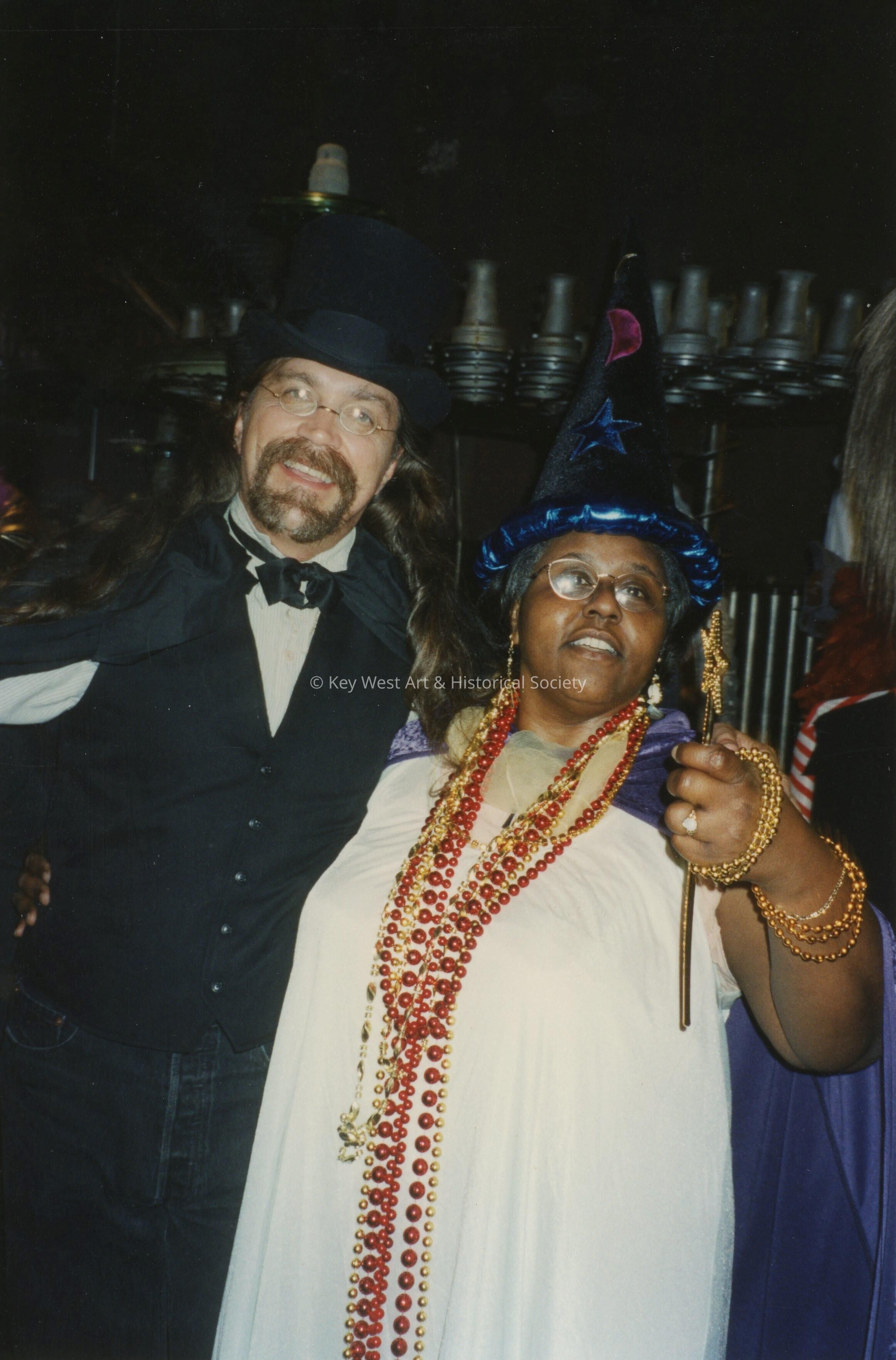 Two unknown people dressed up.