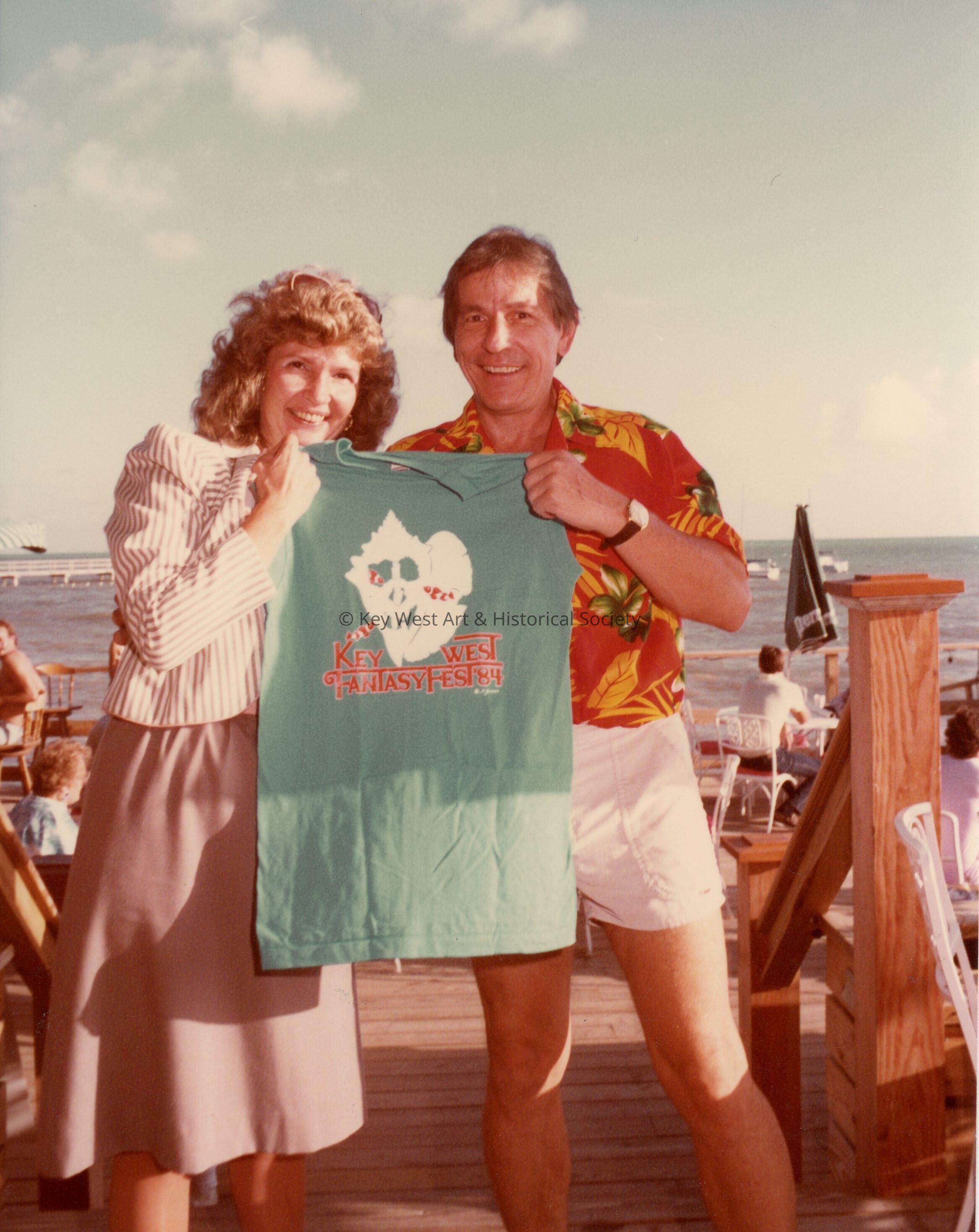 Two unknown people holding up a FF 84 t shirt.Entry/Object ID