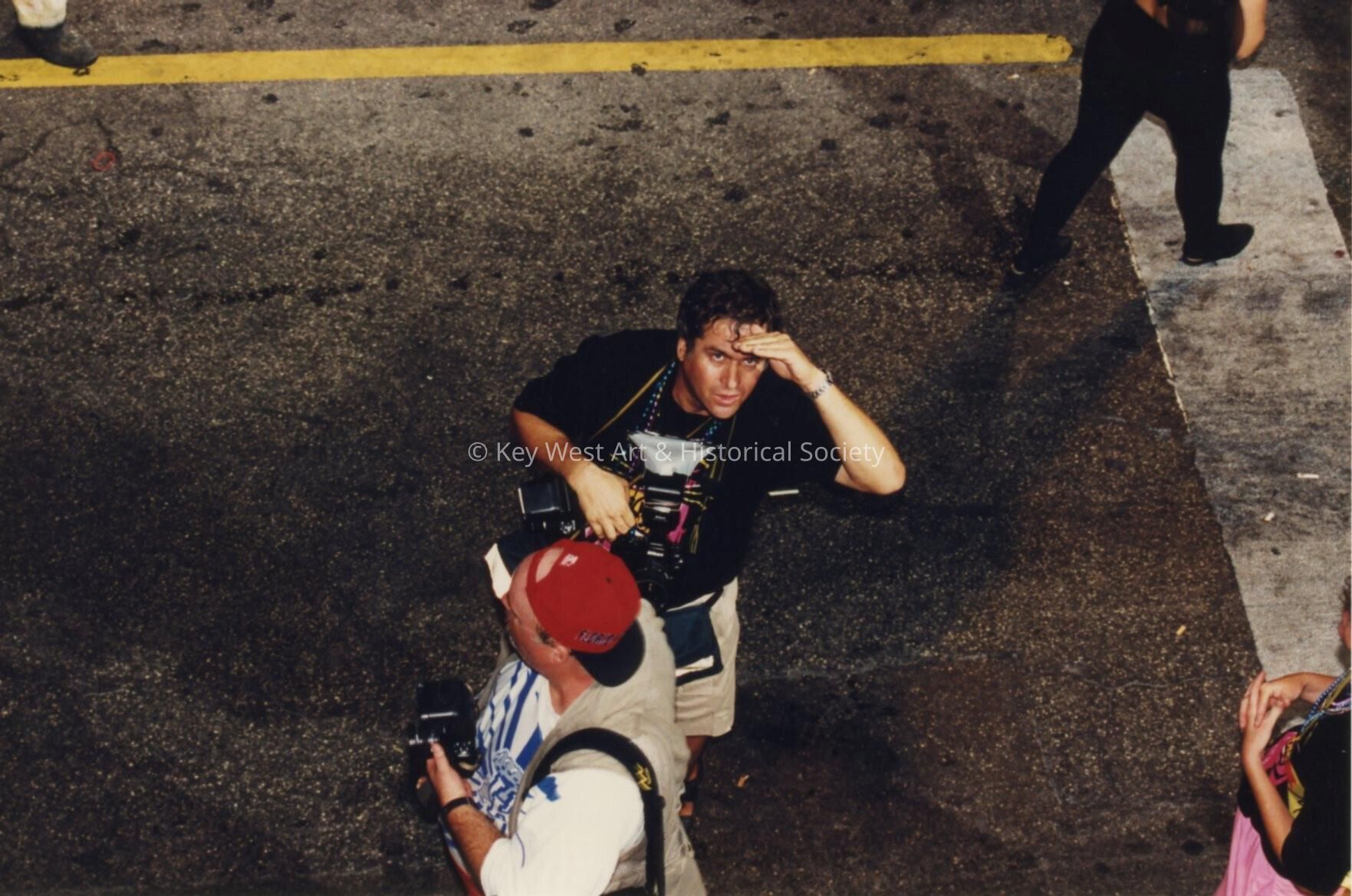 Two unknown photographers standing in the street.Entry/Object ID