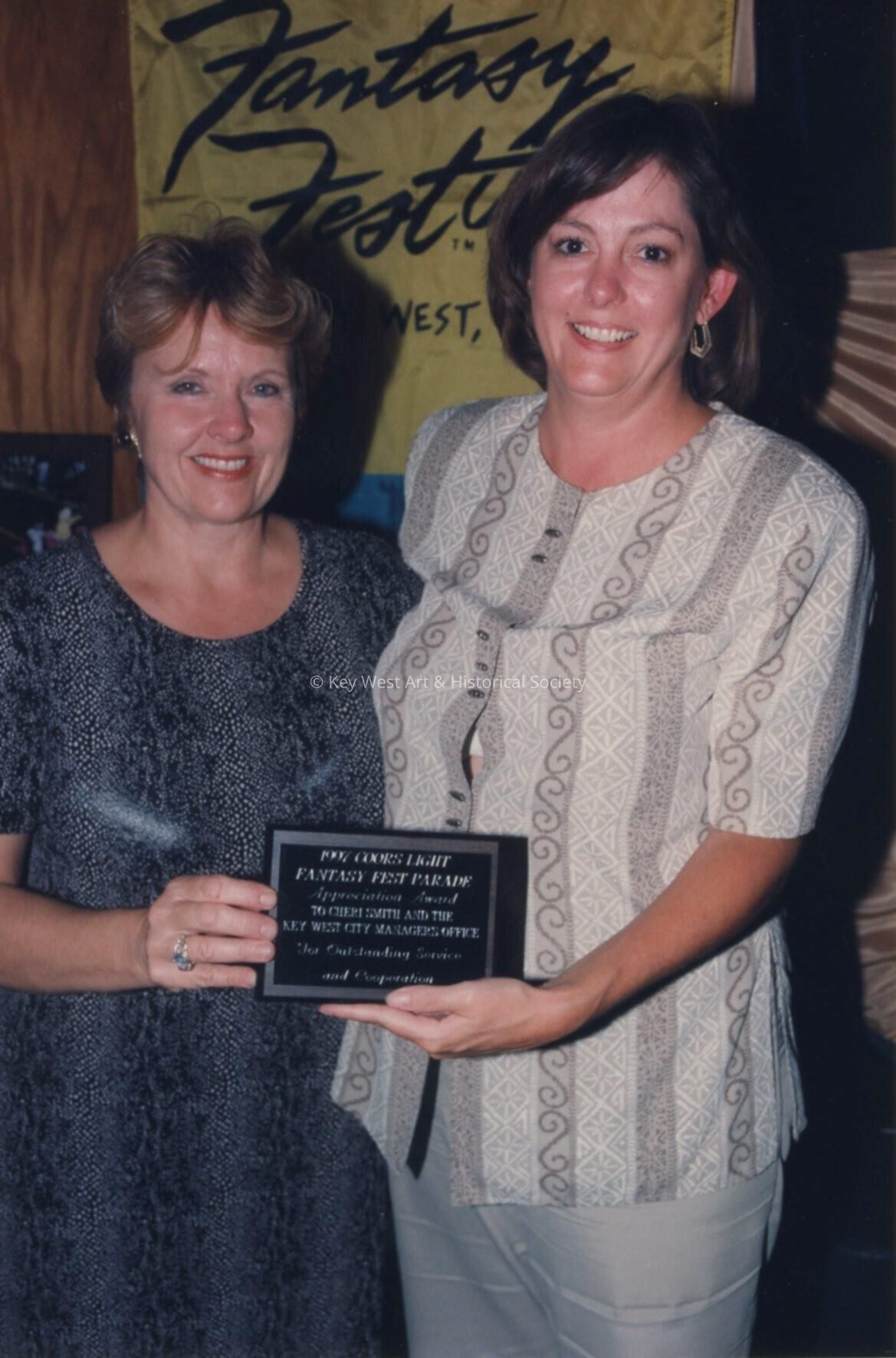 Two unknown woman accepting an award.