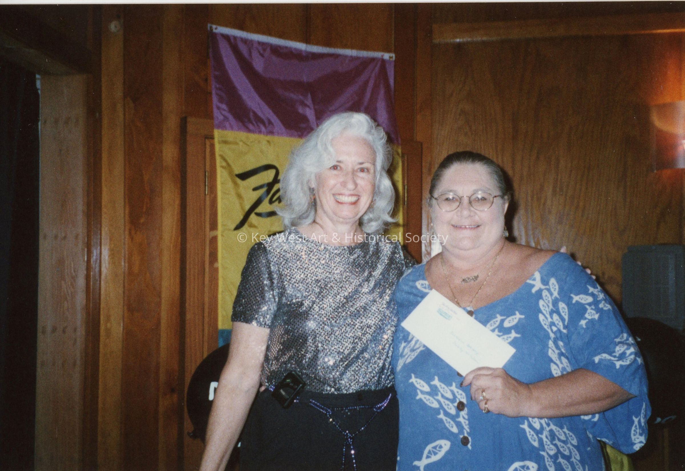 Two unknown woman at an award ceremony.