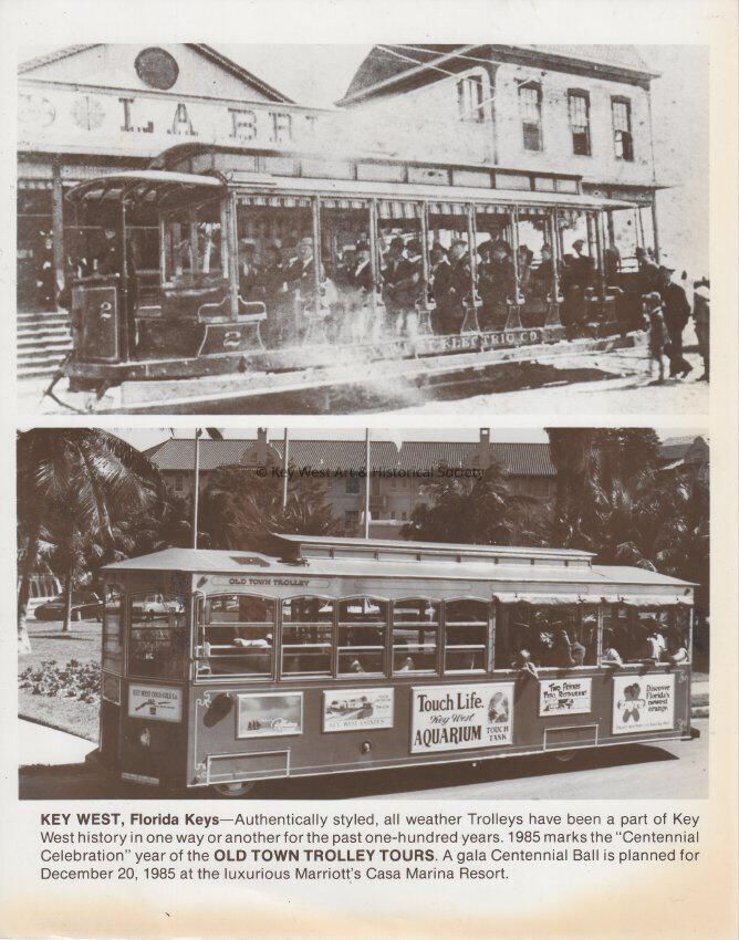 Key West, Florida Keys - authentically styled, all weather Trolleys have been a part of Key West history in one way or another for the past one-hundred years. 1985 marks the "Centennial Celebration" year of the Old Town Trolley Tours. A gala Centennial