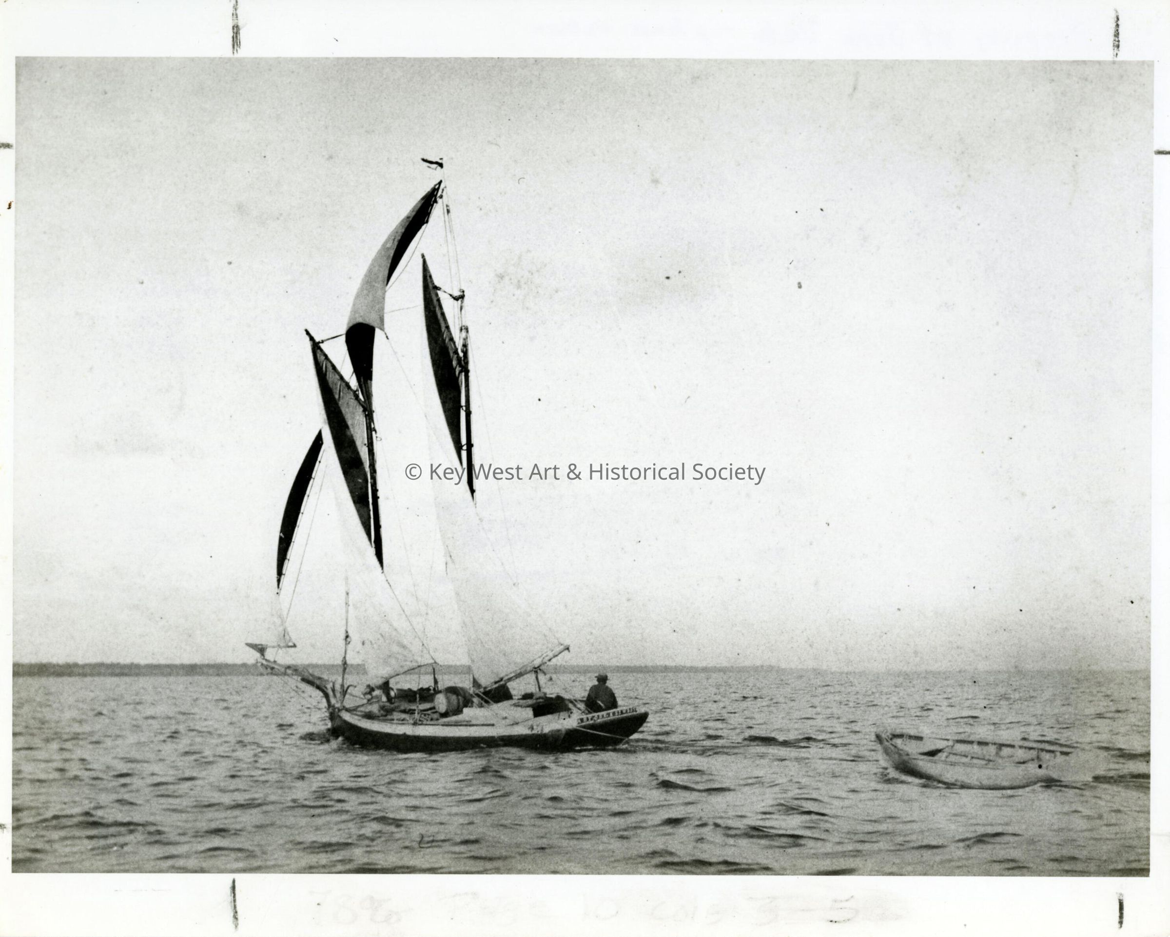 Black and white photograph of a typical Florida Keys schooner.