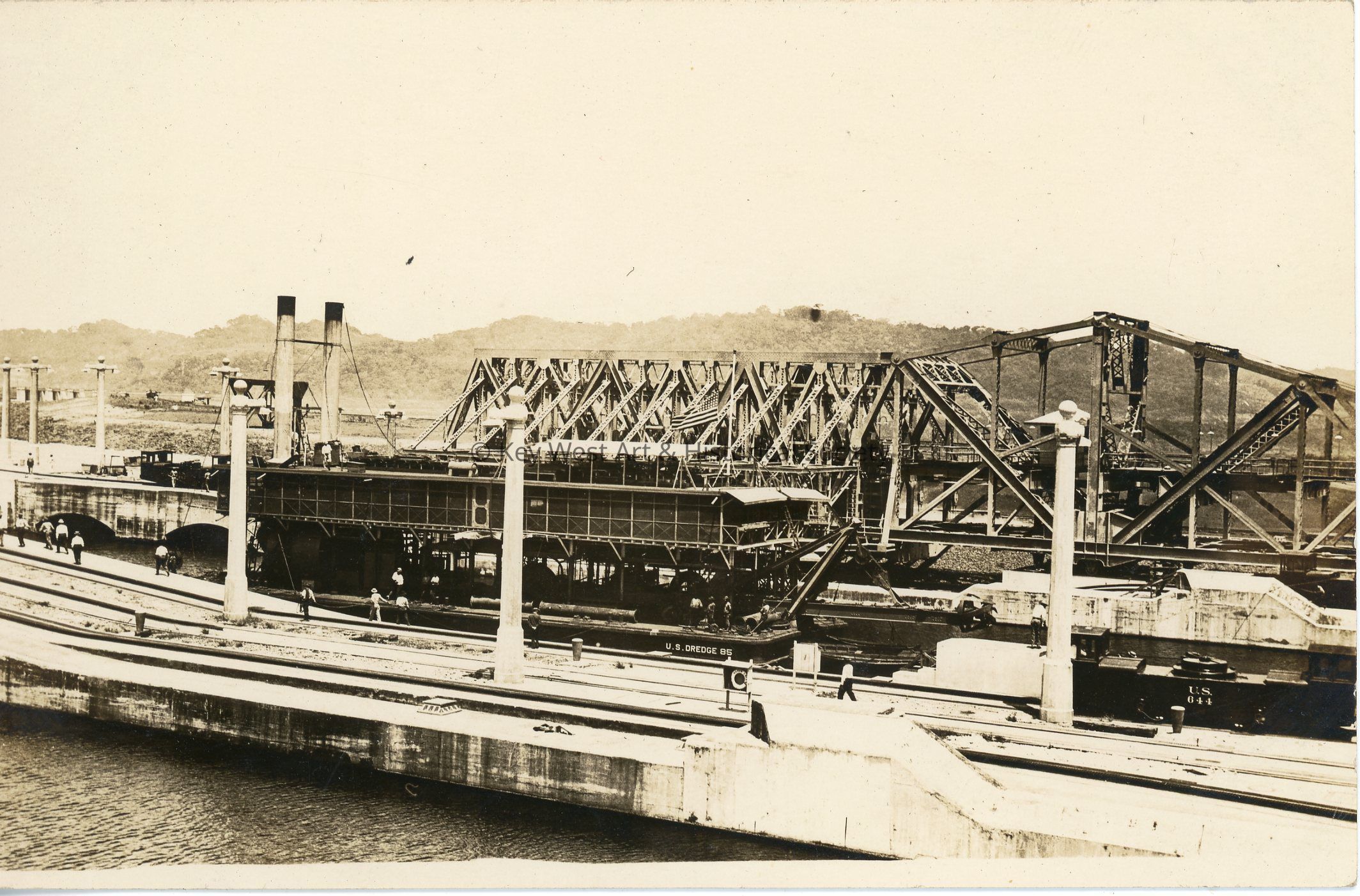 Postcard depicting the boat U.S. Dredge 85 in the Panama Canal