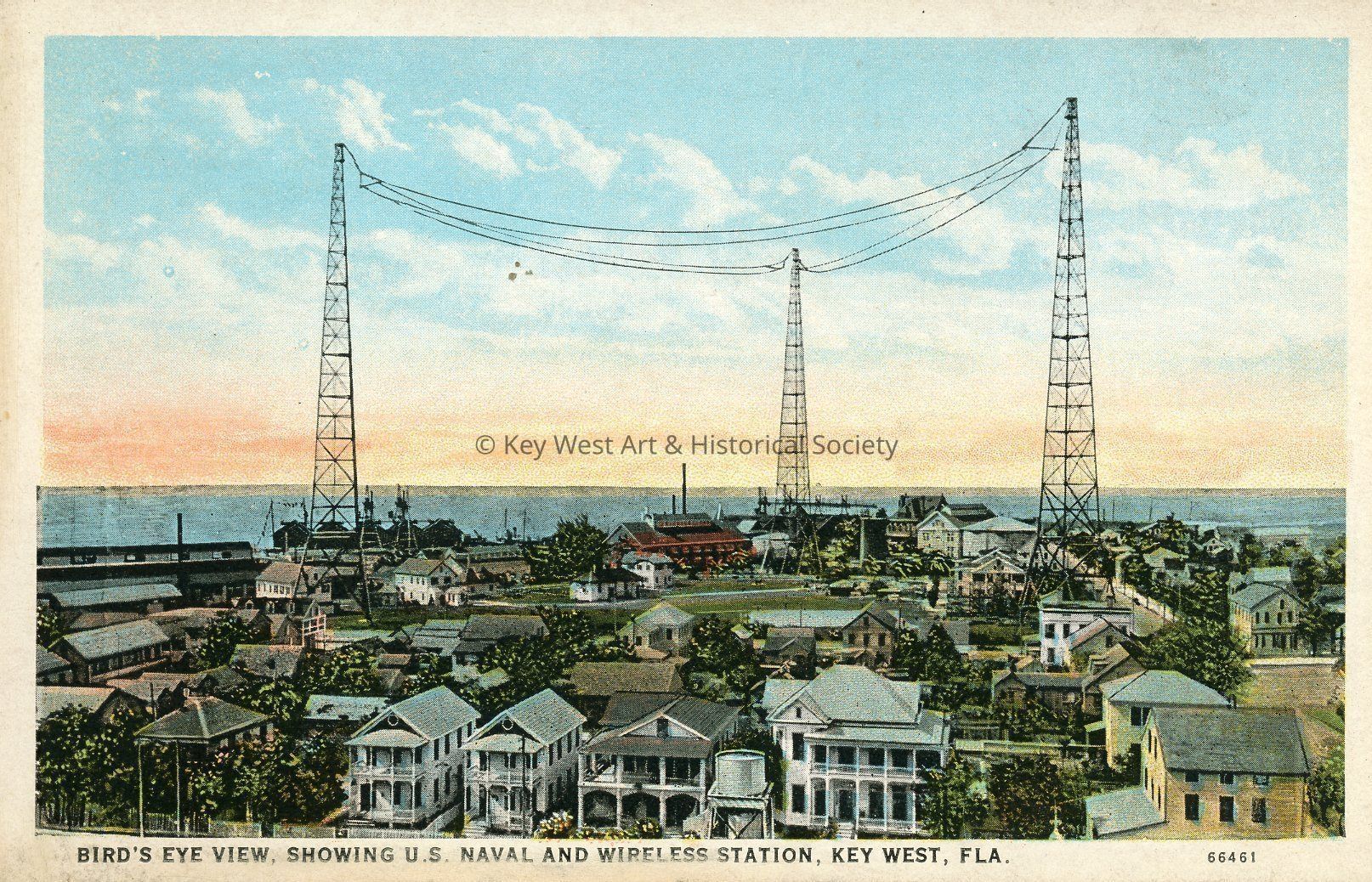 Postcard depicting a bird's eye view of the U.S. Naval and Wireless Station Key West, Florida.Collection