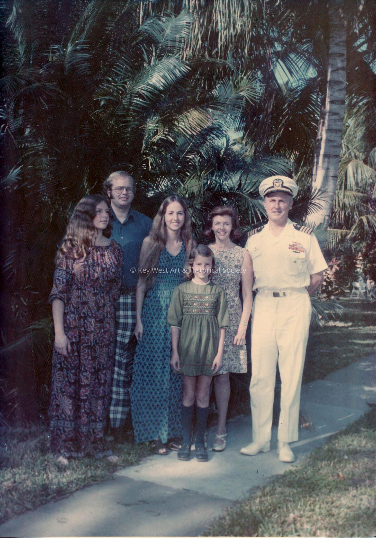 Color photograph of Captain Hugh Murphree and his family at Naval Station Key West. Captain Murphree's final duty was as Commanding Officer of Naval Station Key West from June 1972 until it was decommissioned on 31 March 1974. He retired from the Navy on 1 July 1974.